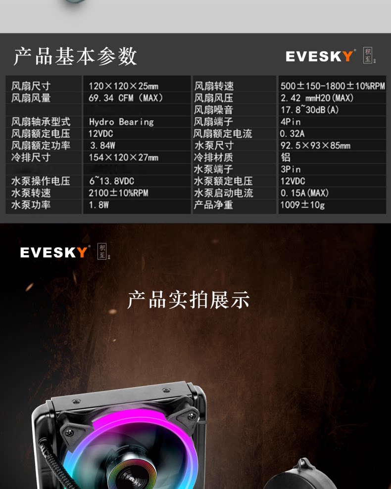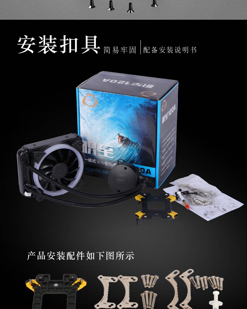Установлено для Evesky 120a Integrated Free Free Radiator комплект Настольный компьютер CPU охлаждение водяного охлаждения вентилятор