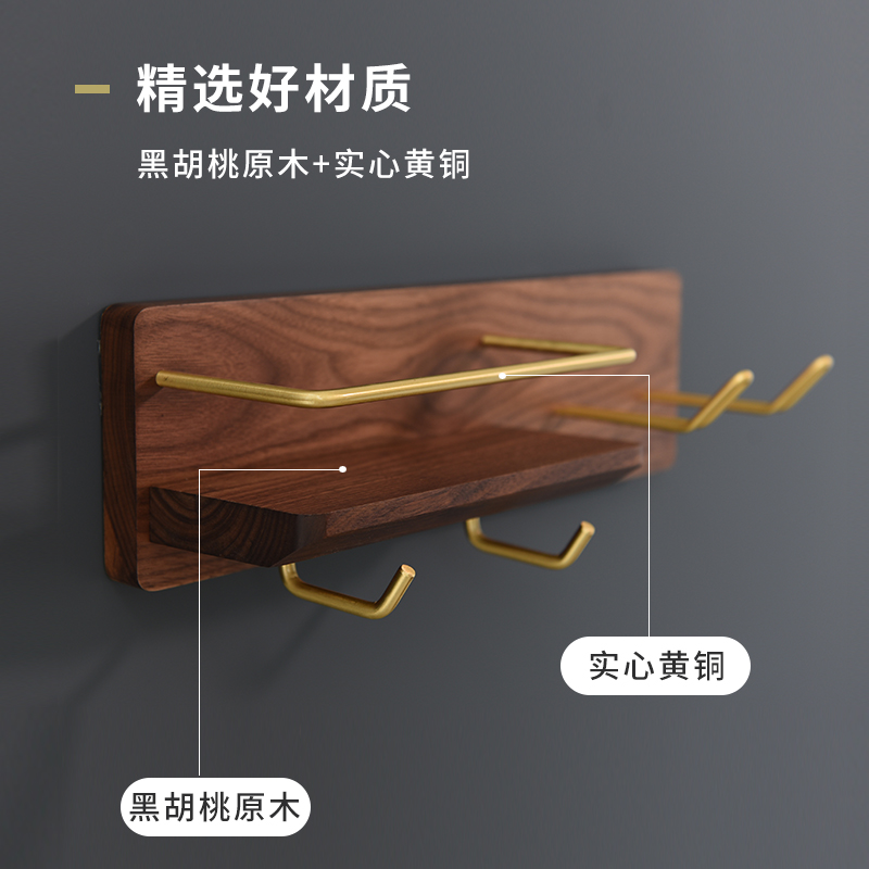 Chong 翀 Фен Фен Растеет полку орех из орехового дерева из цельного дерева латунь висит крючок свободный удар верх Стена Дарена