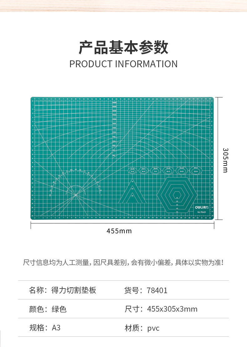 Deli 78400 Cut Pad Pad панель Модель мыши стандартный Спецификация PAD A4 высокая Прочность материала PVC плотности высокая Повторяемая резка и долговечность зеленый один юань бесплатная доставка по китаю