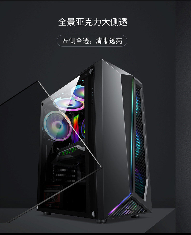 Усадьба к еврее Kokper Computer Charsis Desktop DIY полностью сторона Поперечная игра RGB Водяное охлаждение ATX Big панель Шасси