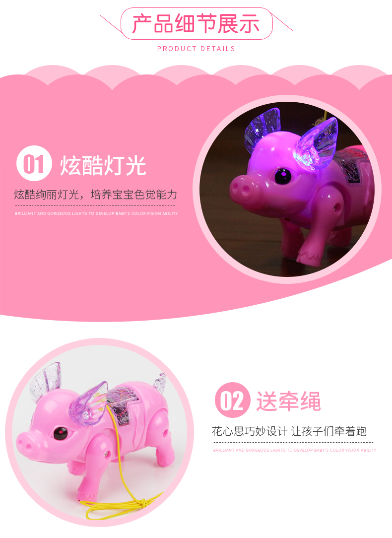 Светящаяся поросенок на электрическом поводке Douyin детские сеть красный фасон унисекс Свинья