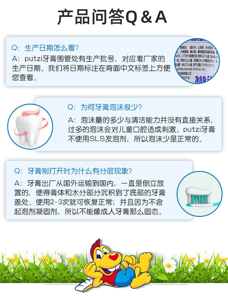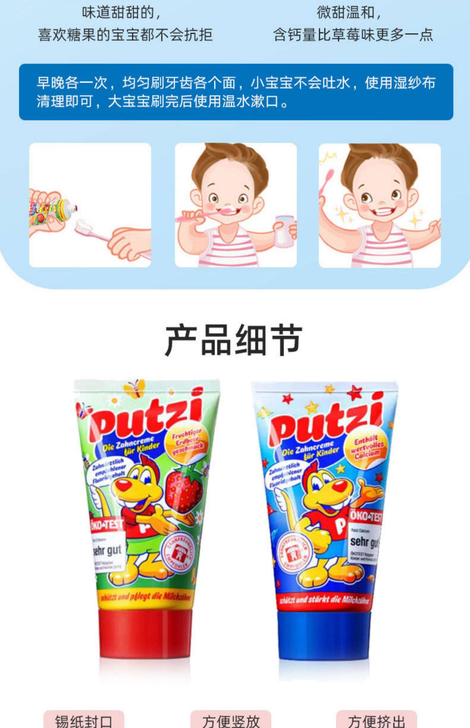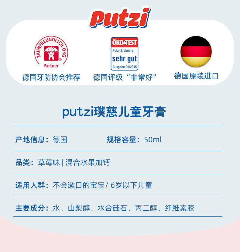 Германия импортировала Путуц детские Зубная паста 1-3-5-6 лет детские на младенца Драматические зубы содержит Флеран