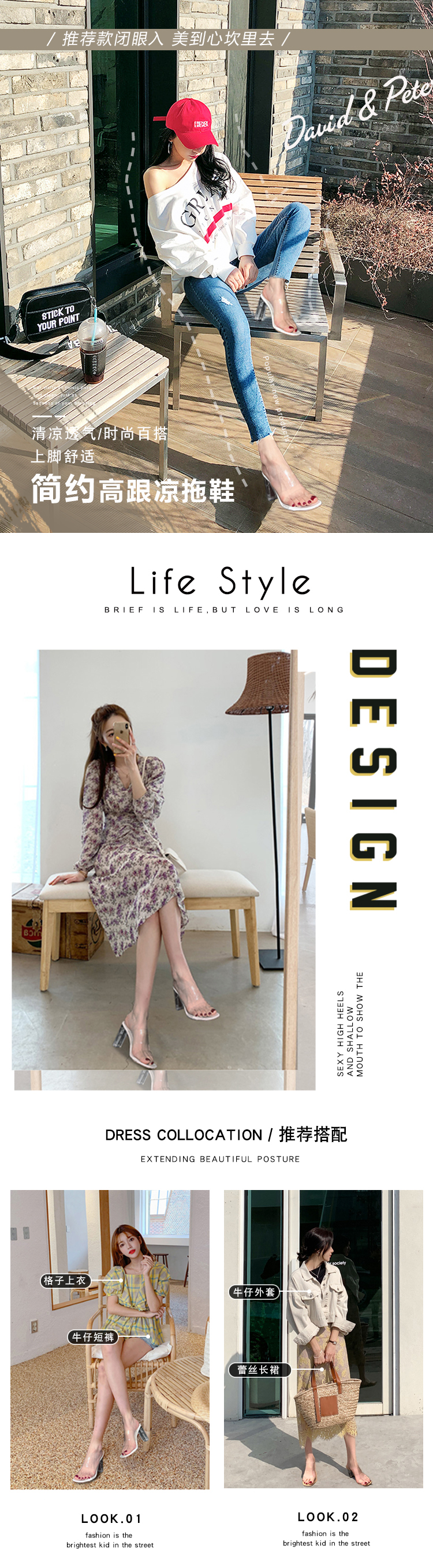 Сандалии для женщин на улице летом новая коллекция 2021 кристально чистый широкий каблук популярный женский тапки сеть красный на высоком каблуке Обувь летняя