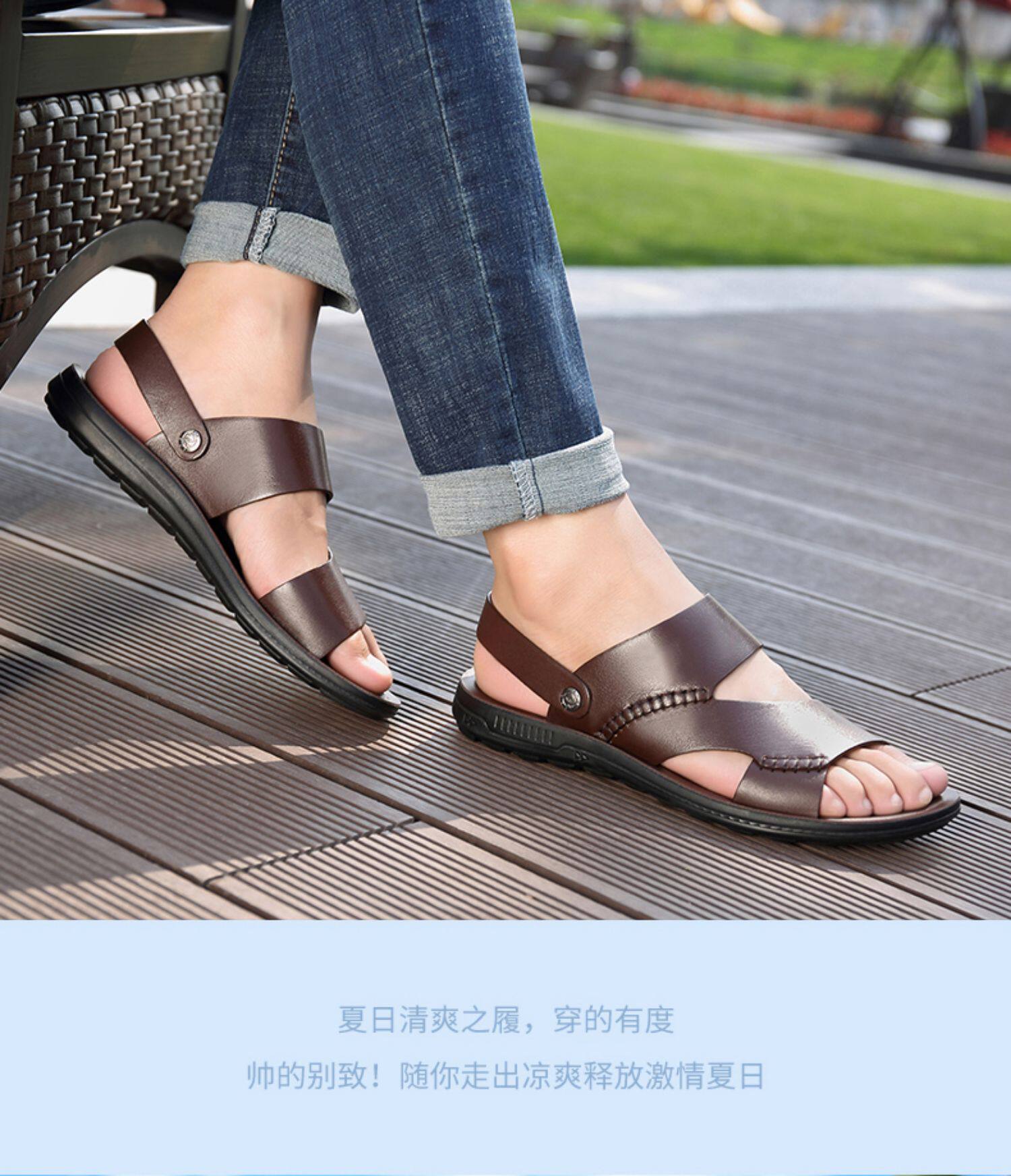 Мужской сандалии из натуральной кожи Лето 2021 г. новый Я свободен, тогда Мэн Чэнкан, я собираюсь носить его на улице для отдыха холодно тапки мужской