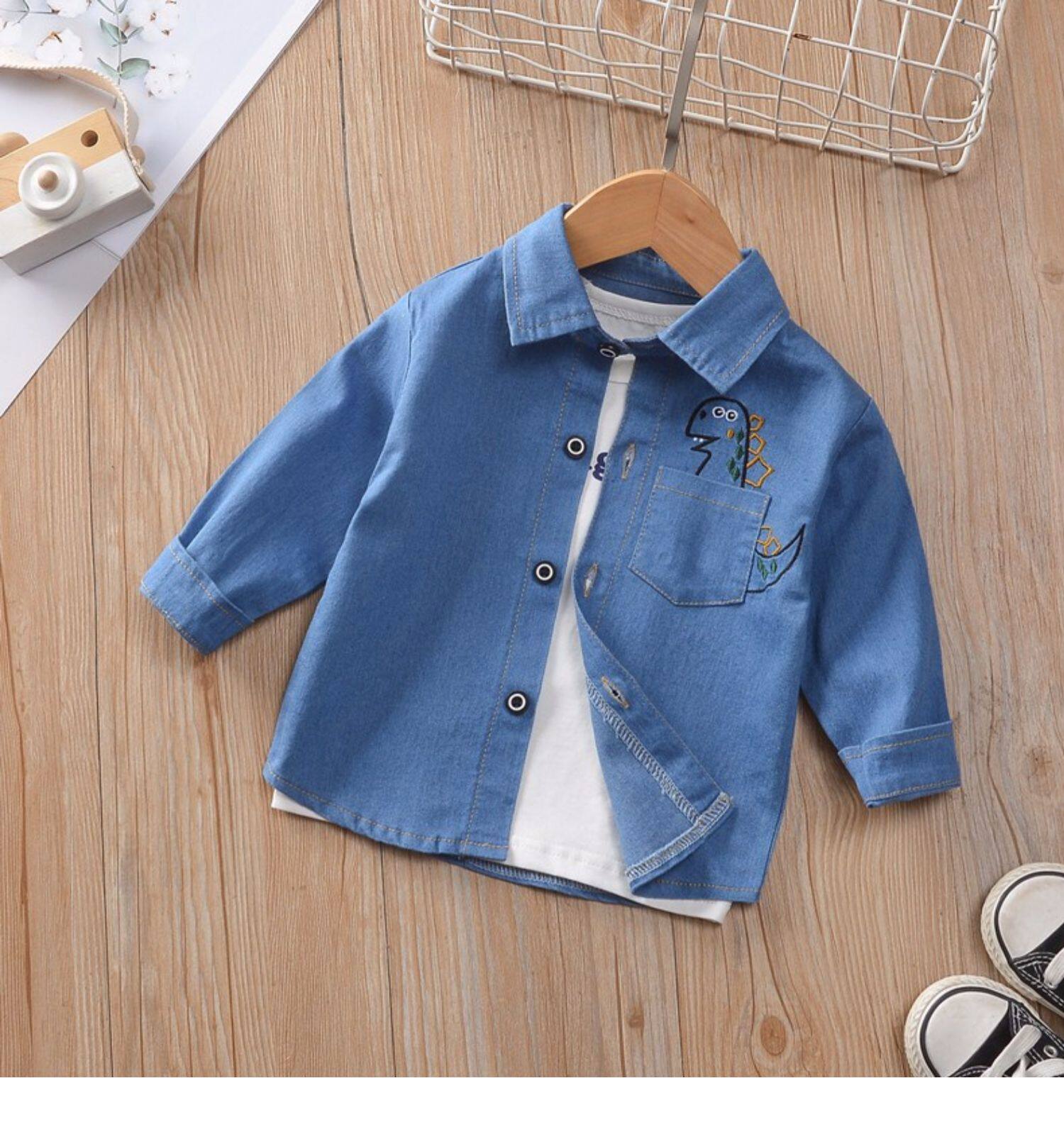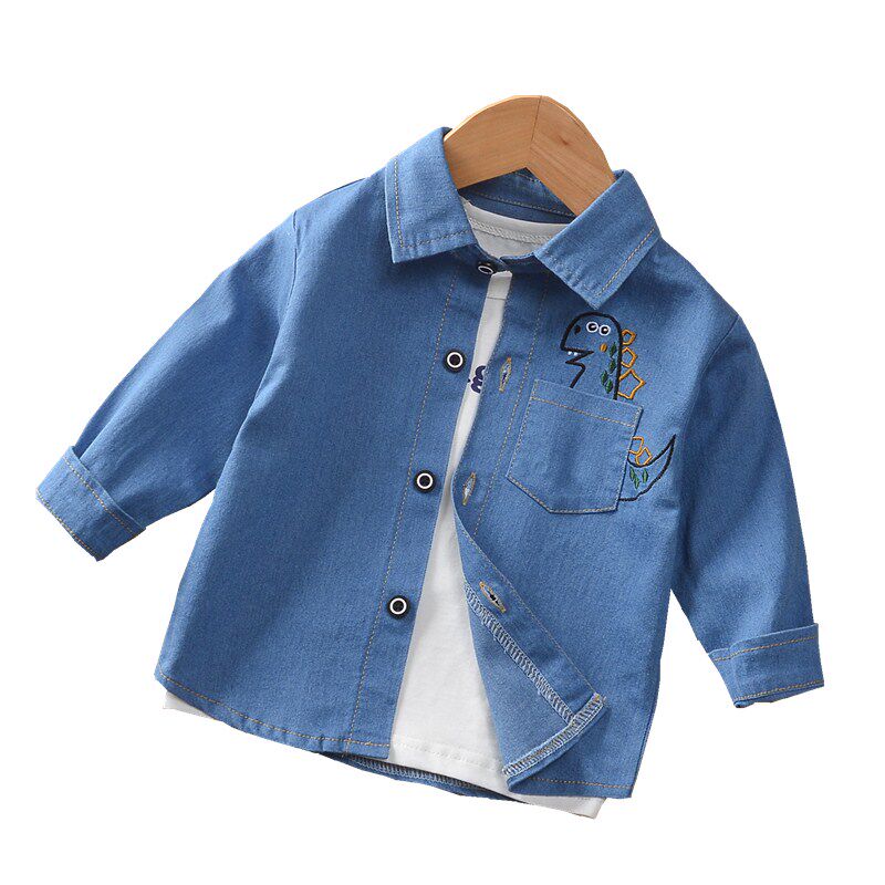 - Динозавр джинсовый сорочка светло голубой