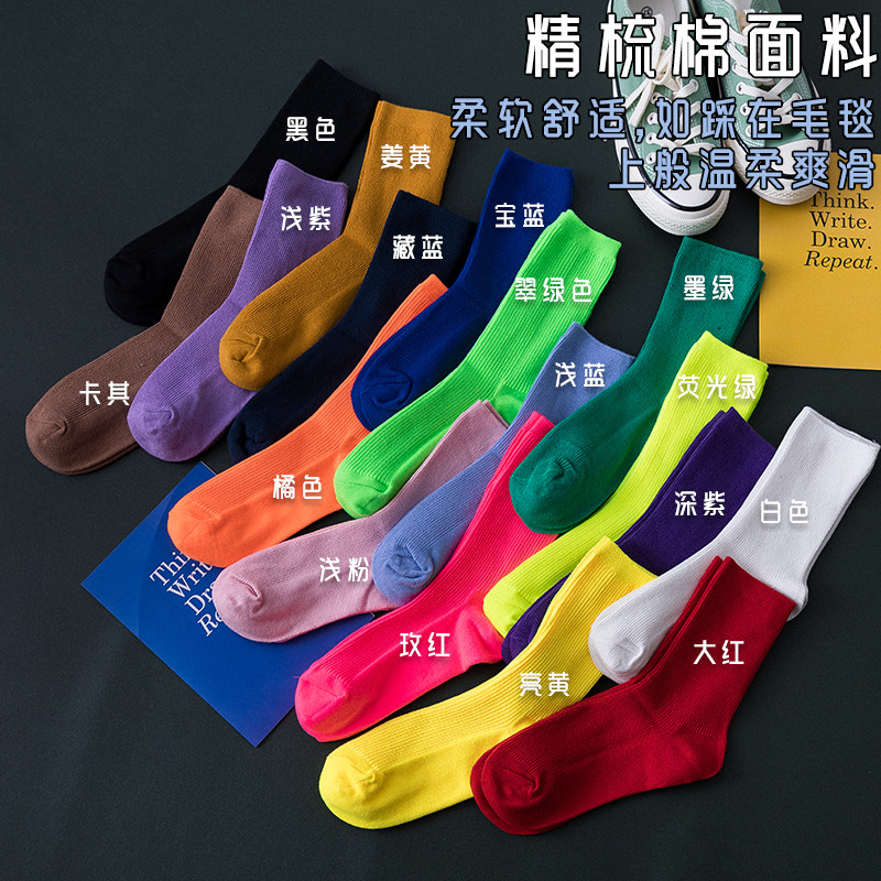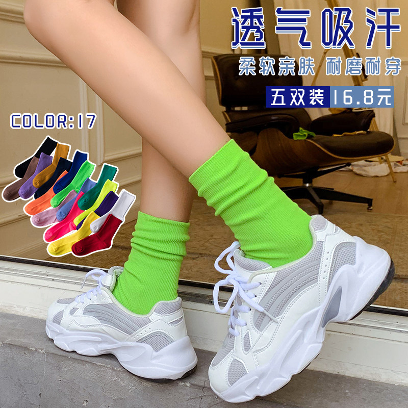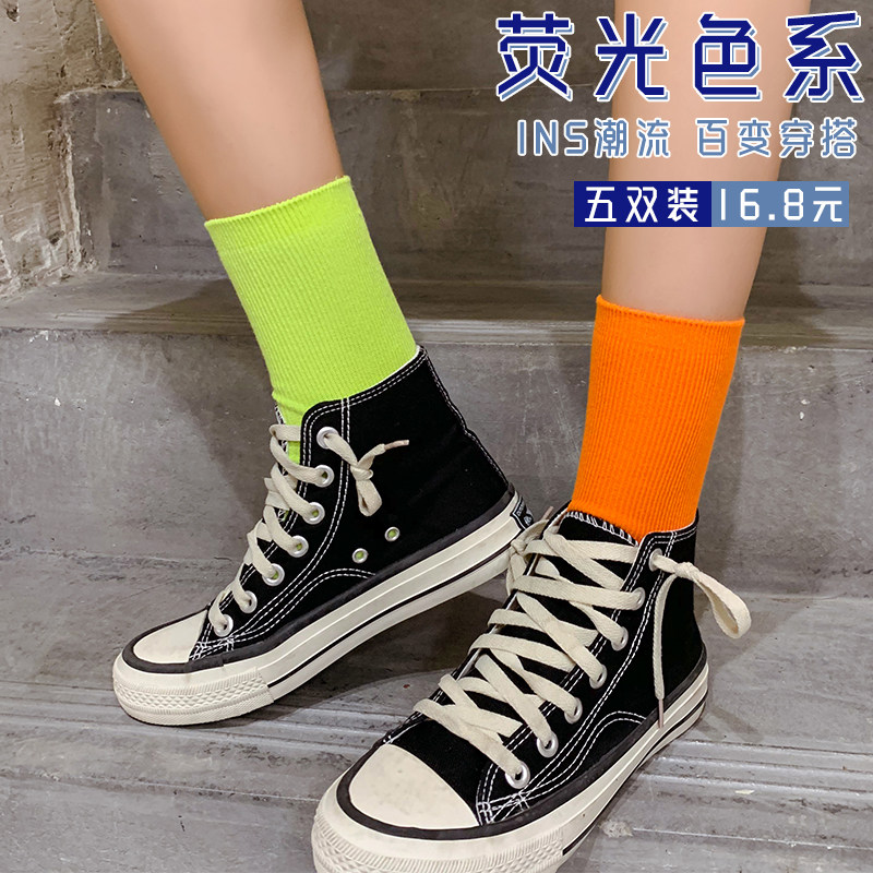 Флуоресцентные зеленые носки средние Носки летние тонкие стиль Ins tide. разноцветный кислотный сеть красный Чулок чистый хлопок лето