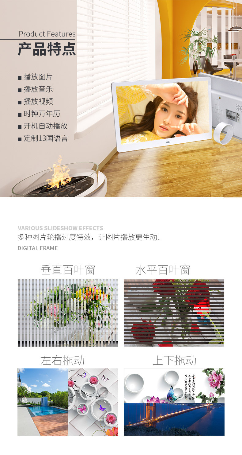 Узкий Боковой 7-дюймовый 8 литиевый аккумулятор 10 цифровая фоторамка держатель электронного альбома высокая Ясное видение частота Фото музыкальный проигрыватель