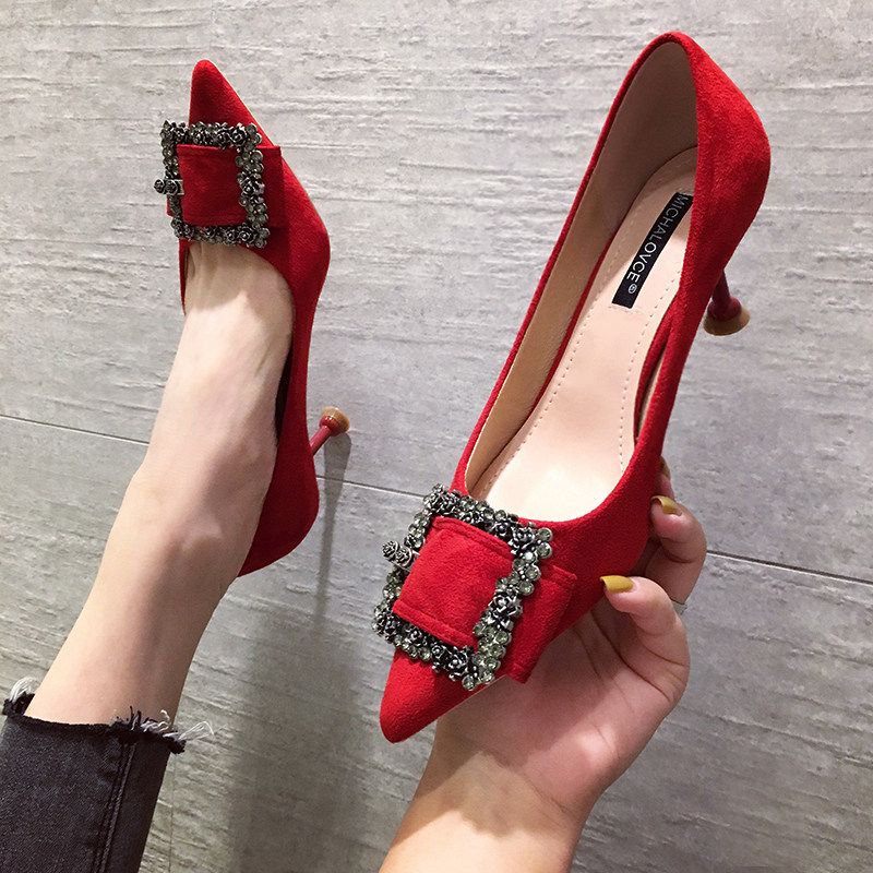 Шпилька на высоком каблуке Обувь 2022. новая коллекция Весна прогрессивный красный француженка черный Кот туфли Не измельчите