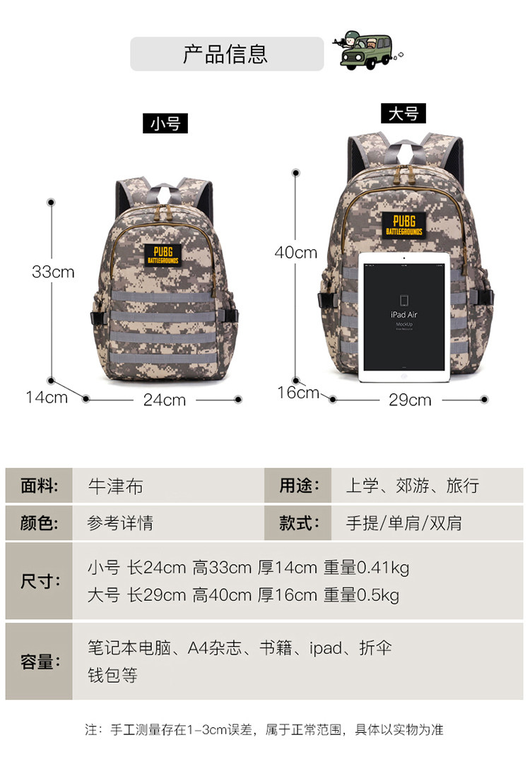 Трехъярусная курица большой вместимости пакет Вентилятор детского сада цвет Задние плечи пакет мужской детские книга пакет Поля битвы PlayerUnknown
