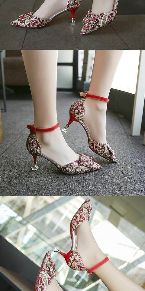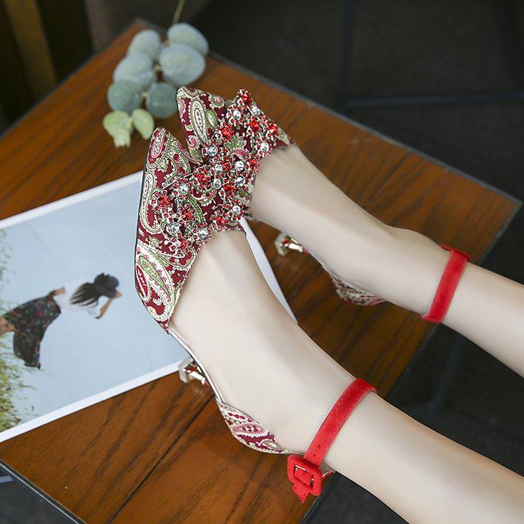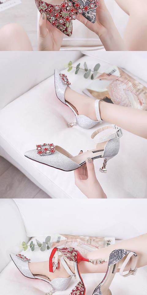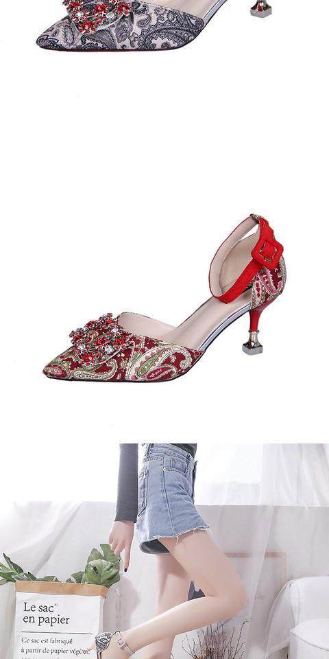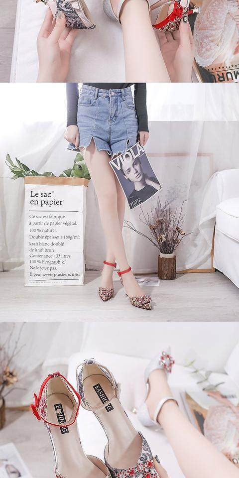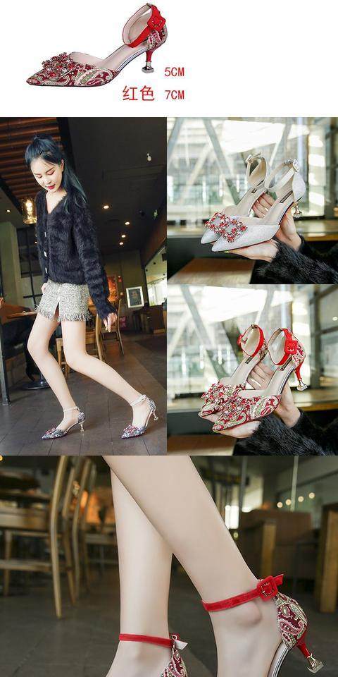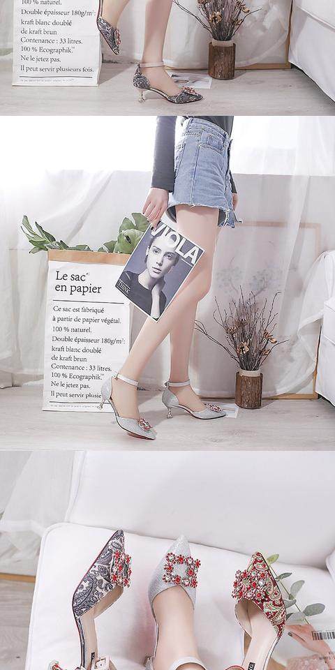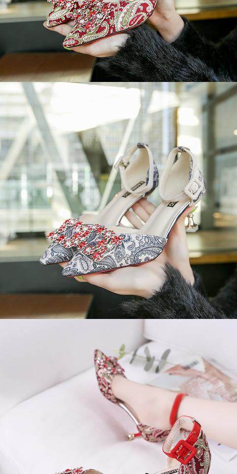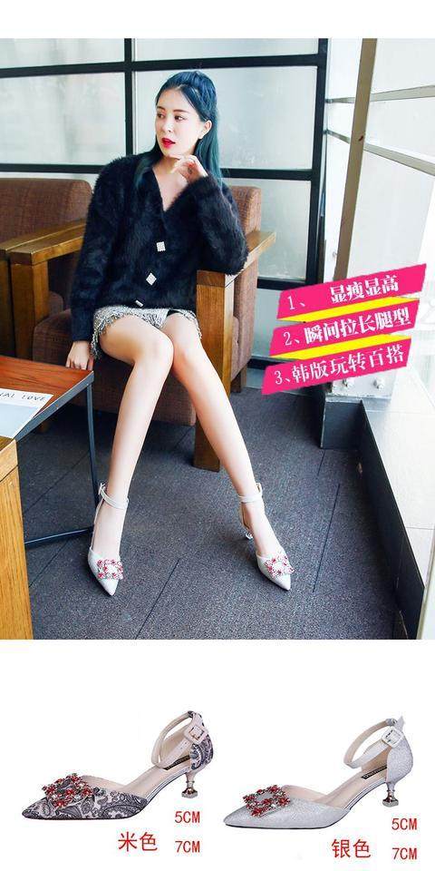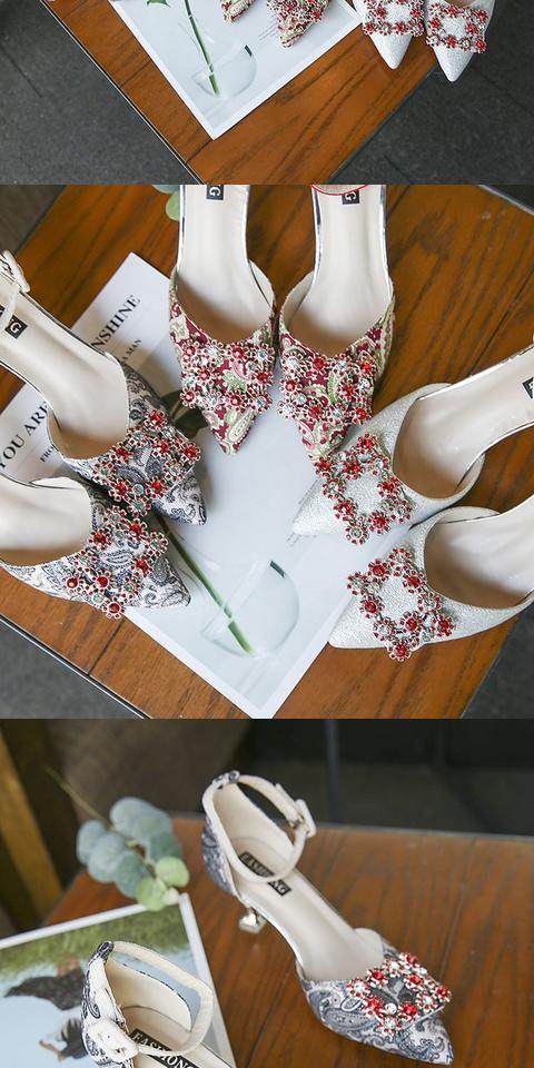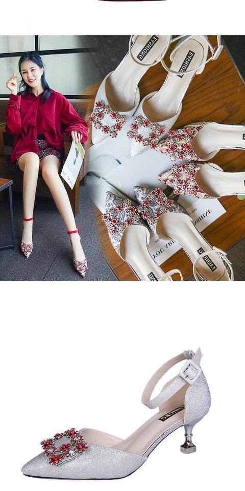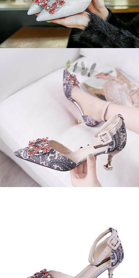 На высоком каблуке Обувь туфли с острым носом 2022 новая коллекция корейская версия Весенняя вечерняя обувь водяной сверл один слово с застежкой приносить светло Рот рабочая обувь