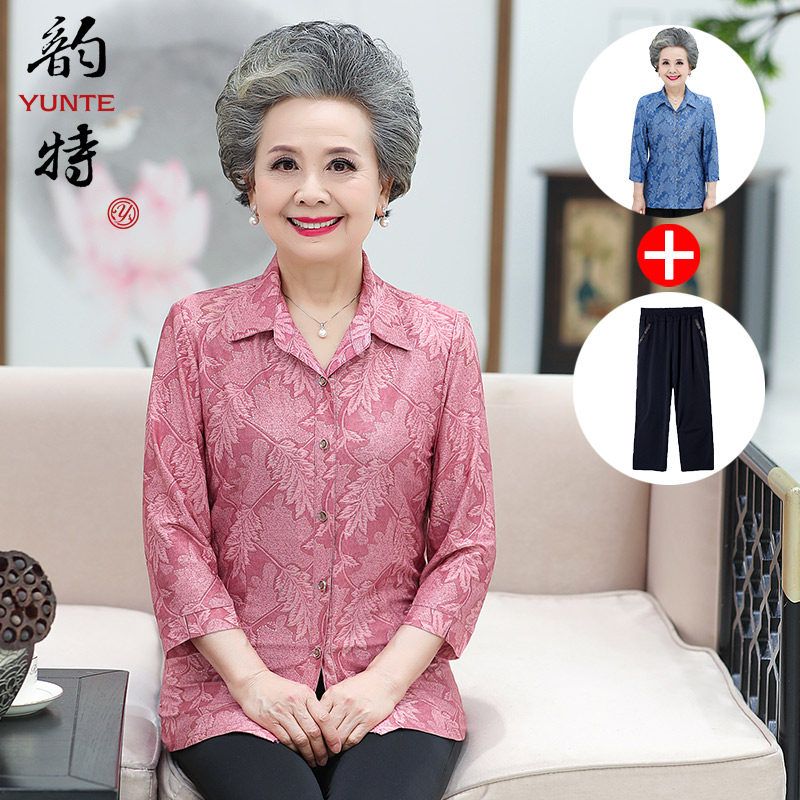 Бабушка Летнее платье рубашка Мама Лето сорочка Среднего возраста, женщина, старшая одежда, лето плюс удобрения плюс плюс большой размер