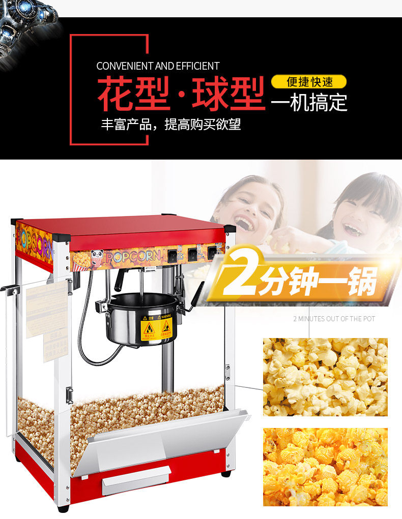 Рост полностью автоматическая Popcorn Machine Commercial Popcorn Pot American Spherical Popcorn Machine 米 米