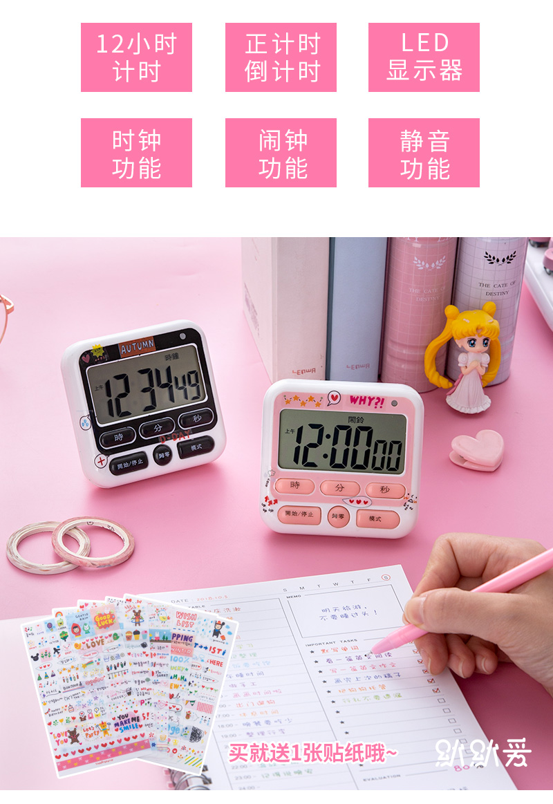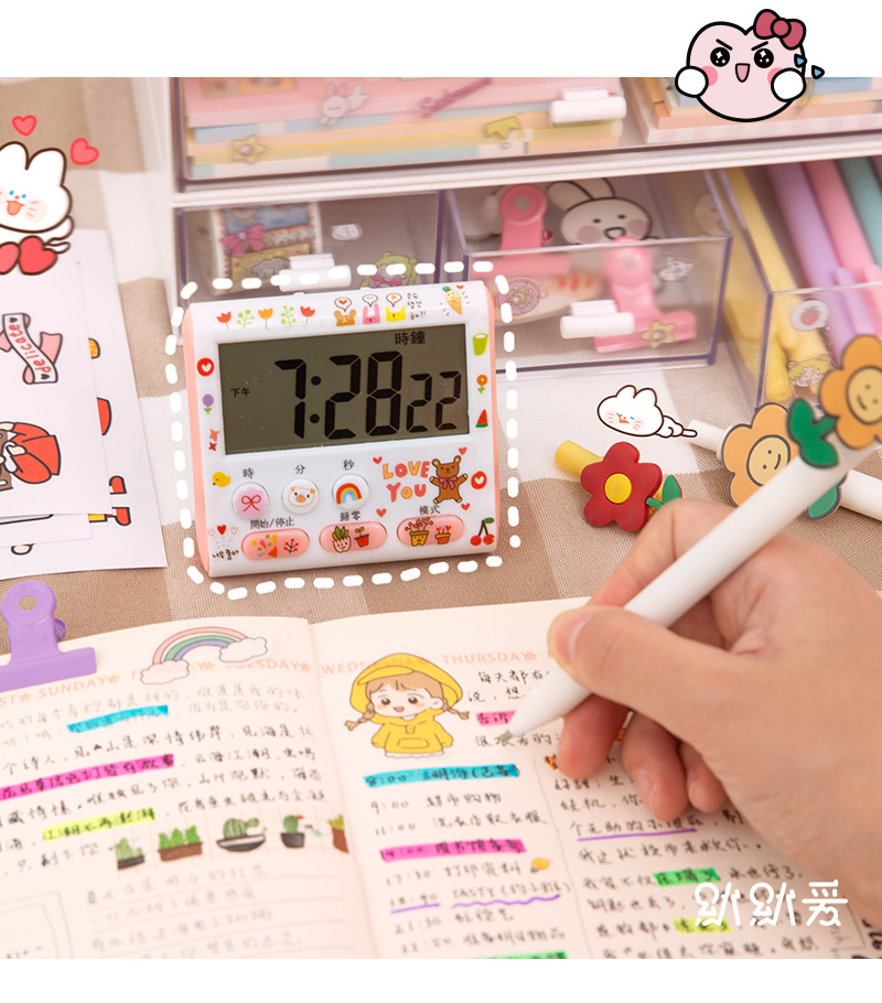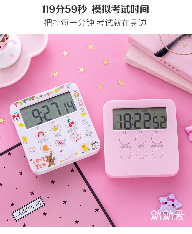 Таймеры простые студентки используют выпускные экзамены, чтобы поставить будильник, чтобы научиться отключать многофункциональное напоминание с таймером