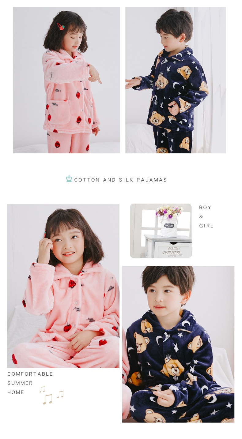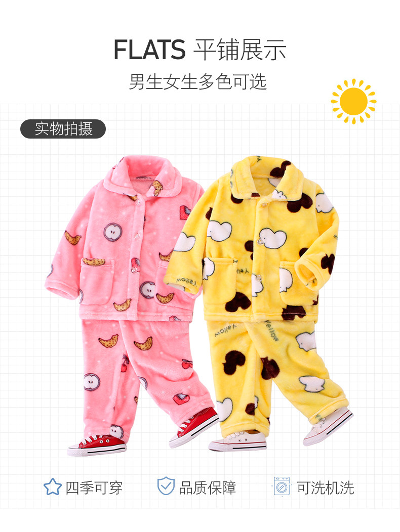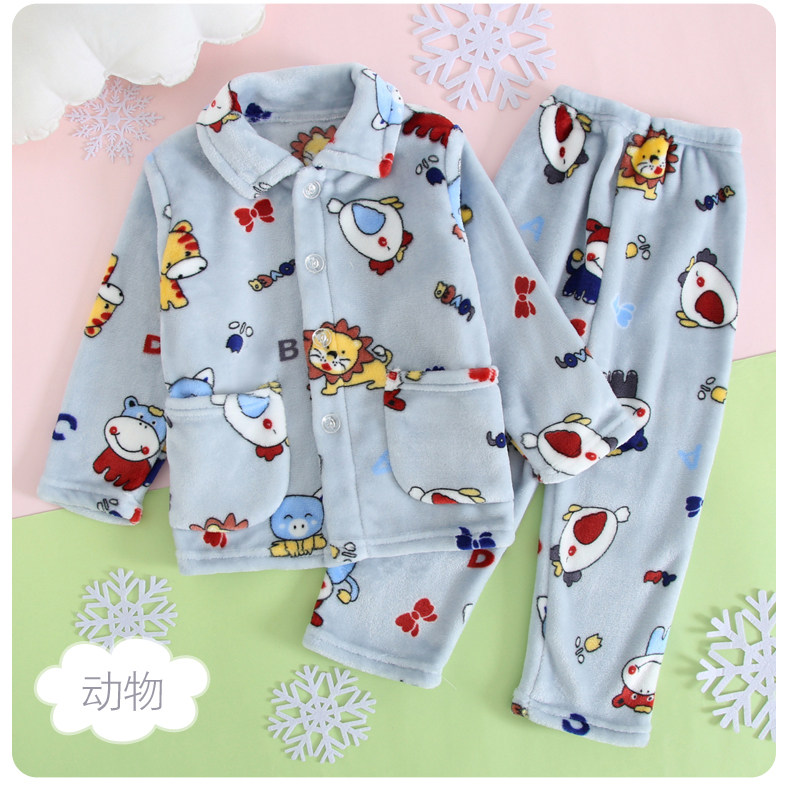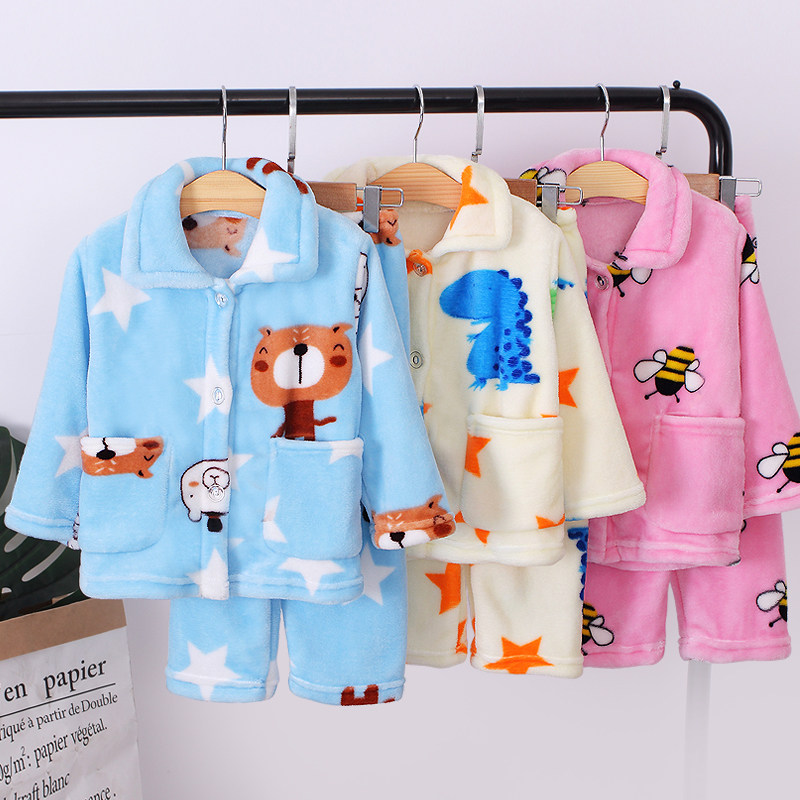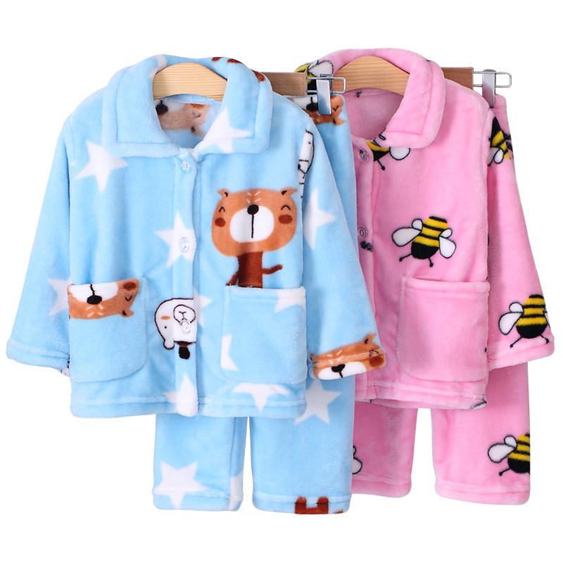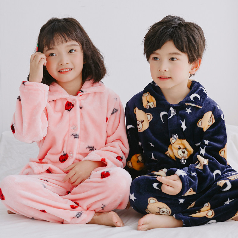 Осень-зима время года детские пижамы утепленный стиль Коралловый флис на мальчика на девочку мужской Старшие дети детские Фланель комплект