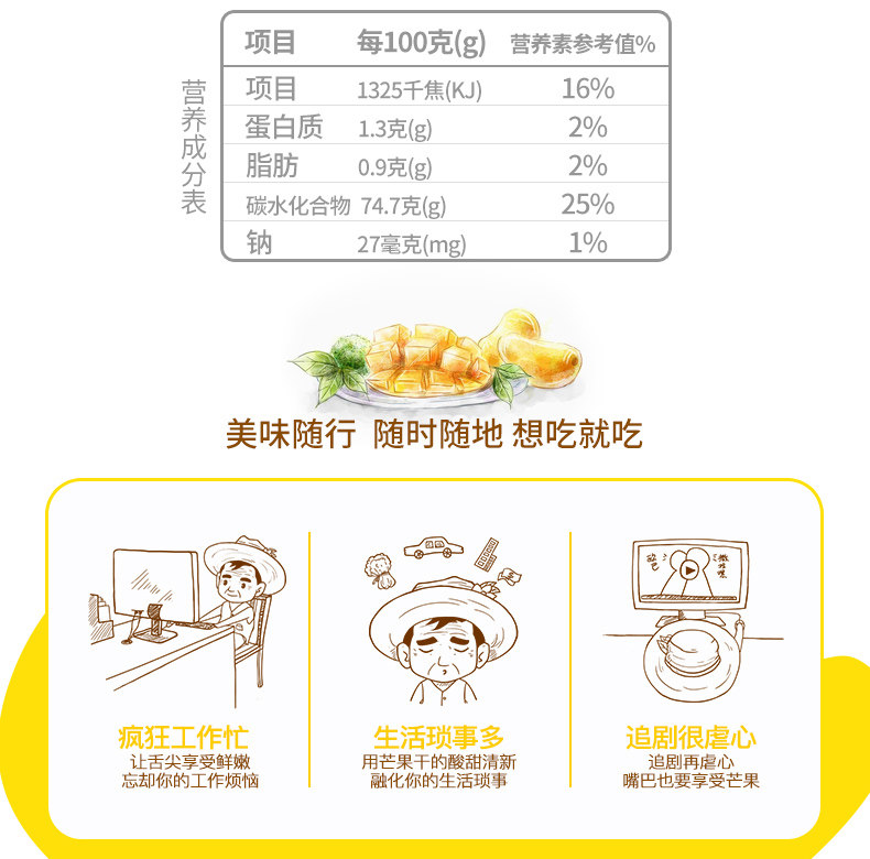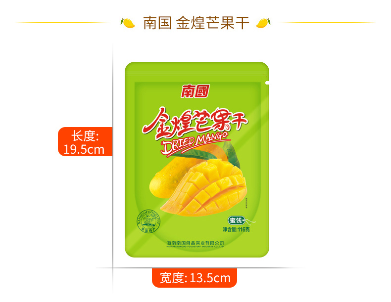 Южный Китай Специальность Jinhuang Mango Сухие 116GX3 Сумки из фруктов Сухие цукаты Фрукты Офисные закуски Гайнань Закуски