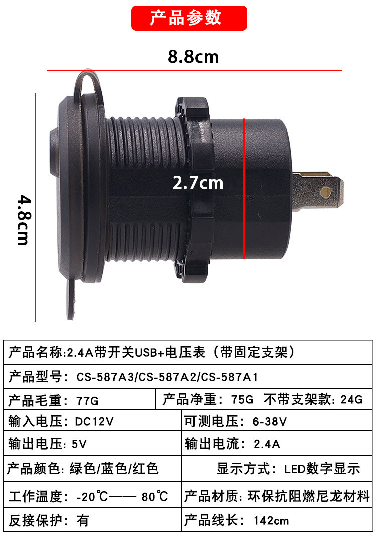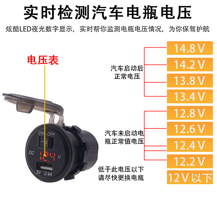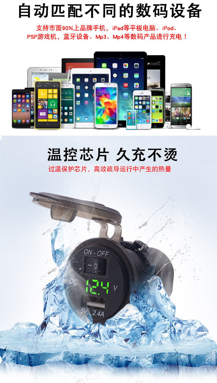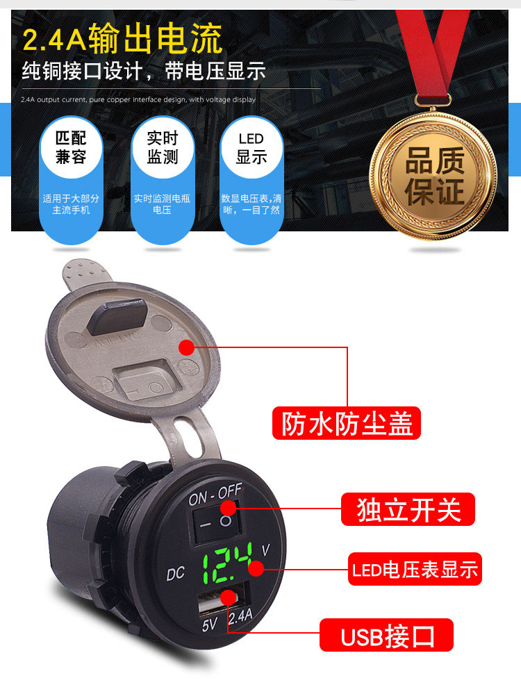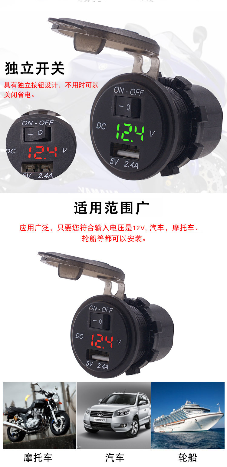 2.4A автомобильная сигарета зажигалка обновленная USB -автомобиль зарядка нагрузочный порт мотоцикл автомобиль автомобиль USB USB обновленная Аксессуары 12 В.