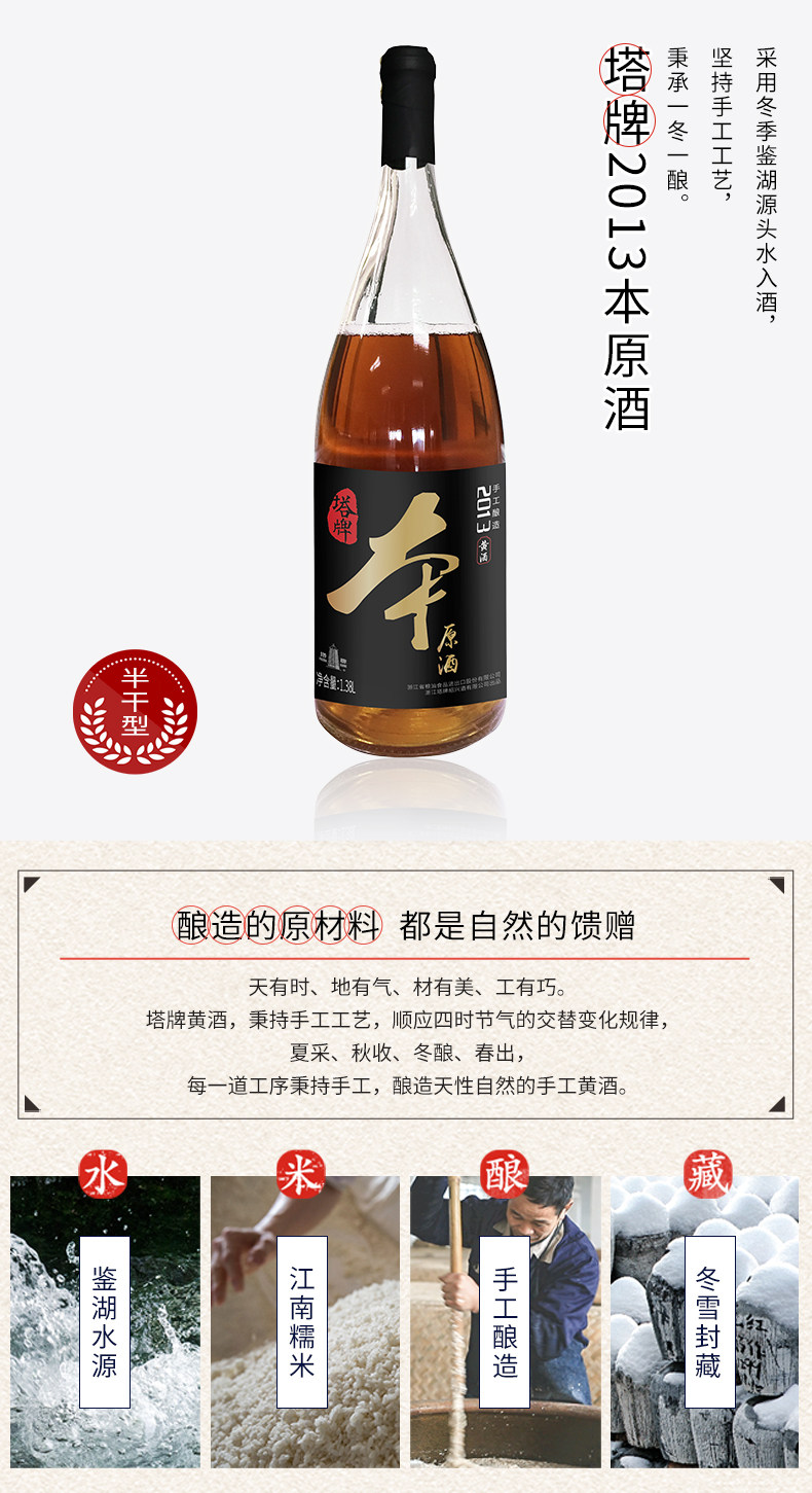【SF】Пагода 2013 2014 оригинальное вино 1.38л рисовое вино Шаосин без Карамельный цвет старое вино Huadiao