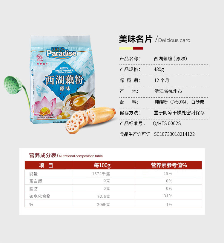 Лапша с корнем лотоса Paradise West Lake оригинальный вкус содержит Сахарный завтрак быстрого приготовления поколение Лапша с корнем лотоса, Ханчжоу, фирменное блюдо Западного озера 480г