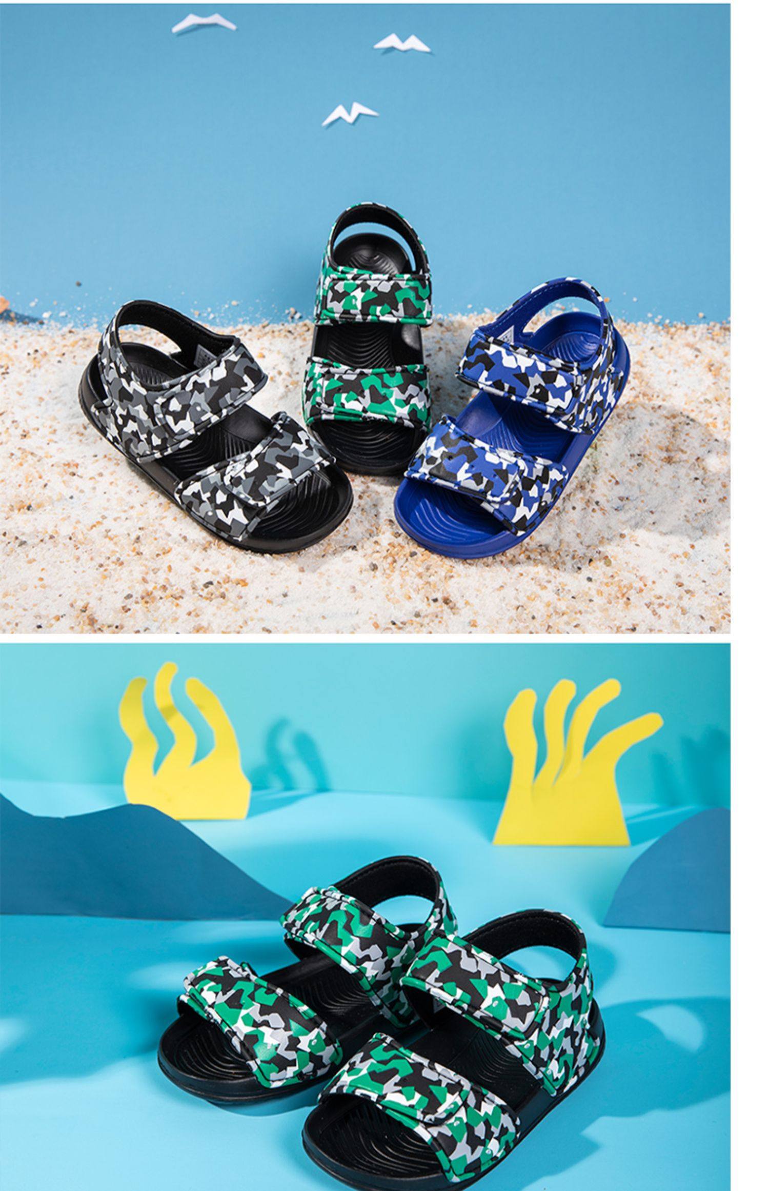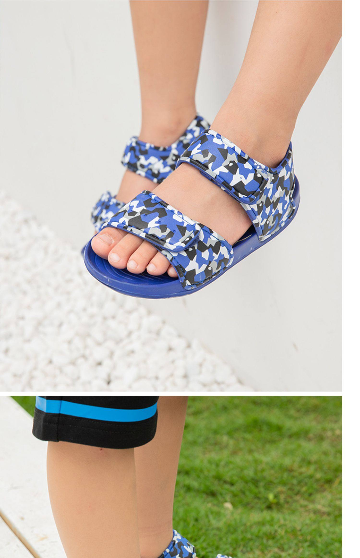 Abckids детская обувь Лето комфортно для отдыха популярный Мягкое дно нескользящие Пляжная обувь Волшебные наклейки на мальчика сандалии