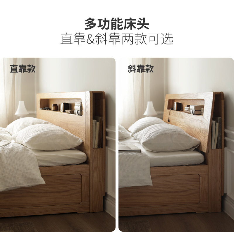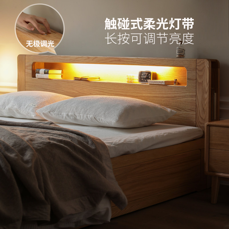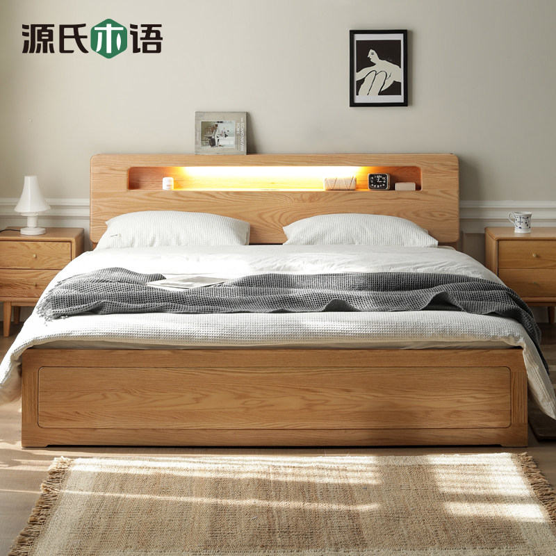 Меч полностью Твердая деревянная кровать Nordic 1,5 метра 1,8 корпус дубового ящика поколение Минималистская спальня с двуспальной кроватью