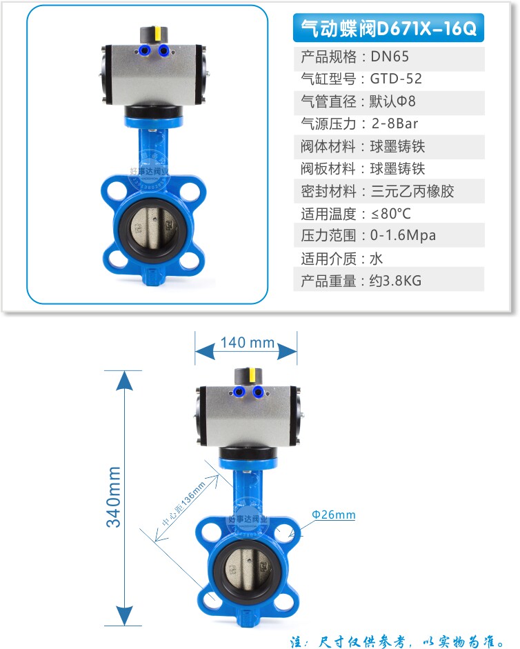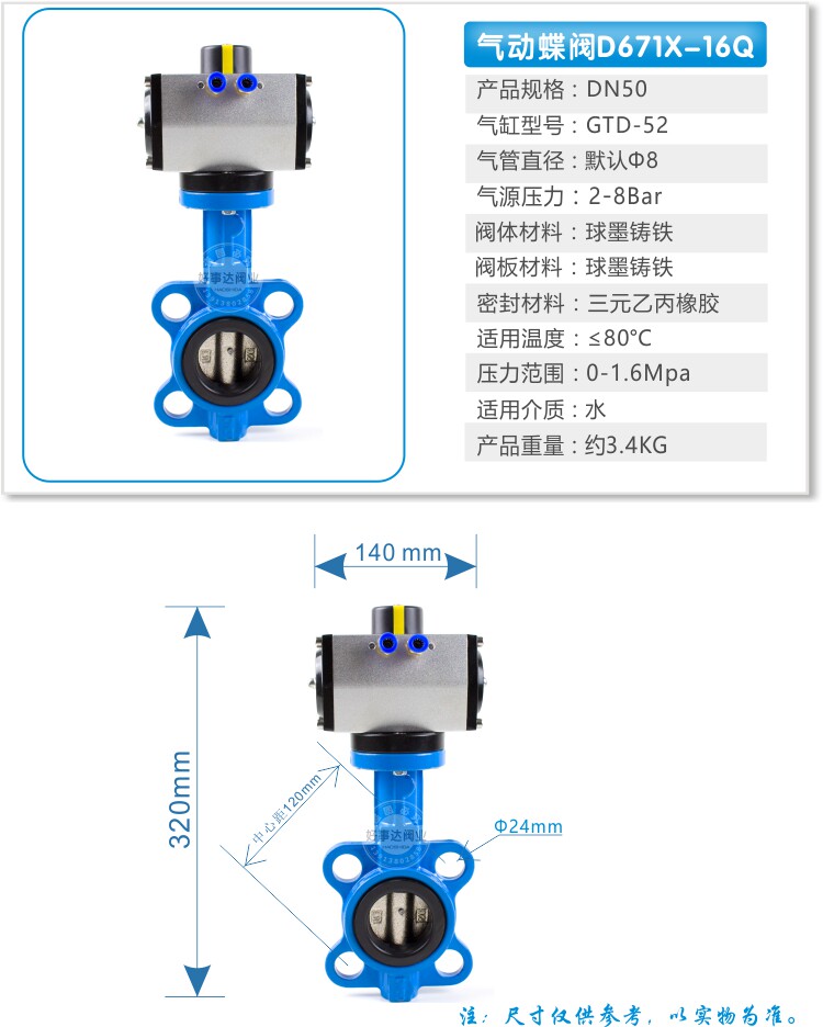 Пневматический клапан дверь Клапан бабочки D671X Пара пациента Объем DN 50 65 80 100 150 200 300