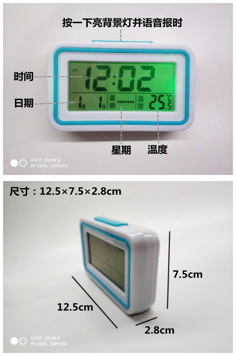 Ночной светстиль Найдите время, будильник, второй дисплей, без Дата, № в подарок Двухсторонний наклейка(Шасси) слева верх Угловая кнопка низ Яркий свет Светлый
