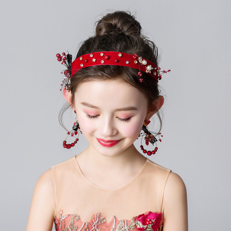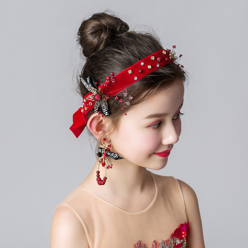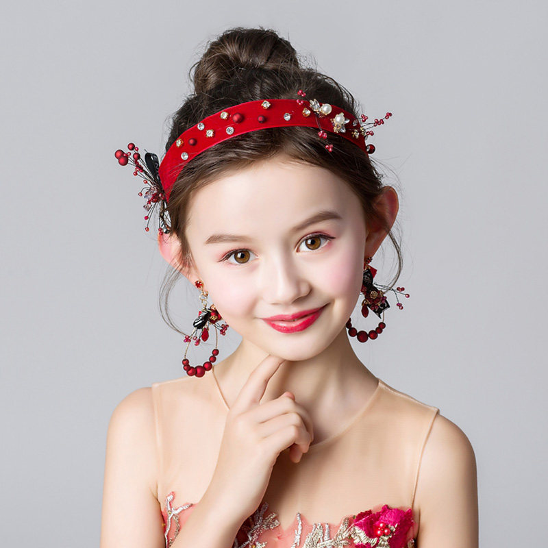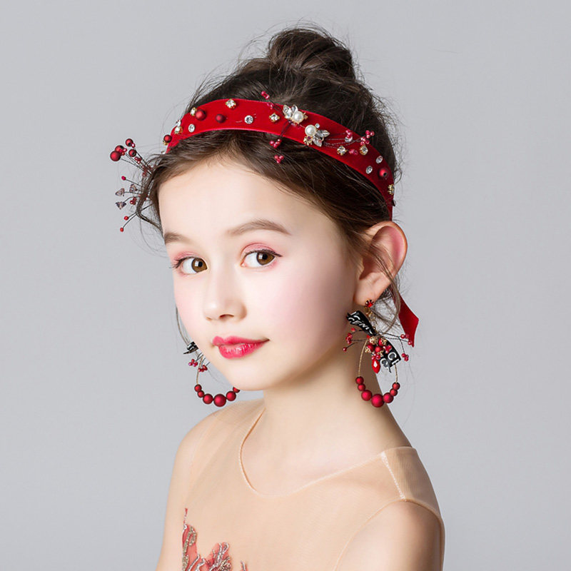 Лиландо на девочку красный Горный хрусталь с жемчужинами Корона детские Производительный головной убор, повязка на голову, цветочница, корона, серьги, цветок на голову