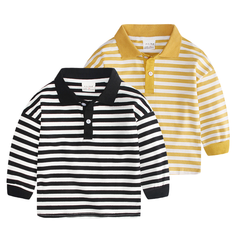 Детское на мальчика рубашка поло длинный рукав Футболка 2021 осень новый товар новинка Маленький и средний детские детские отворот полосатый принт длинный рукав Футболка