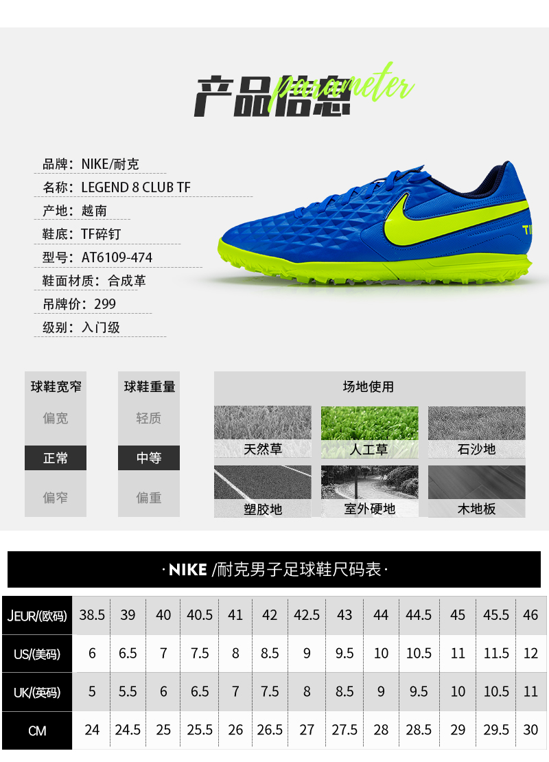 Nike футбольные туфли легенда 8 взрослый TF сломанный Nike мужской Ребенок для Обувь обуви Лето AT6109