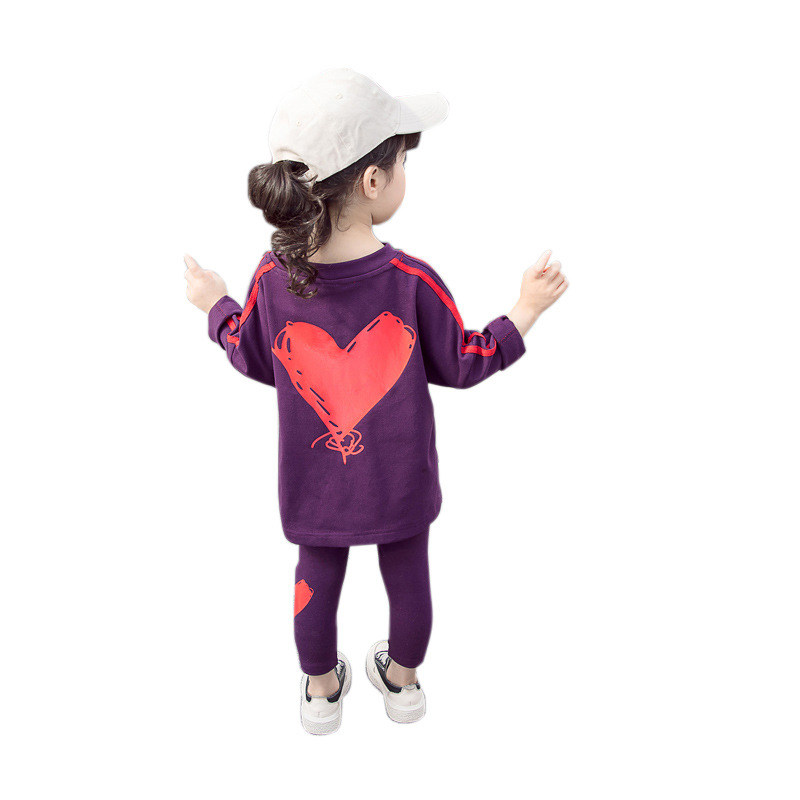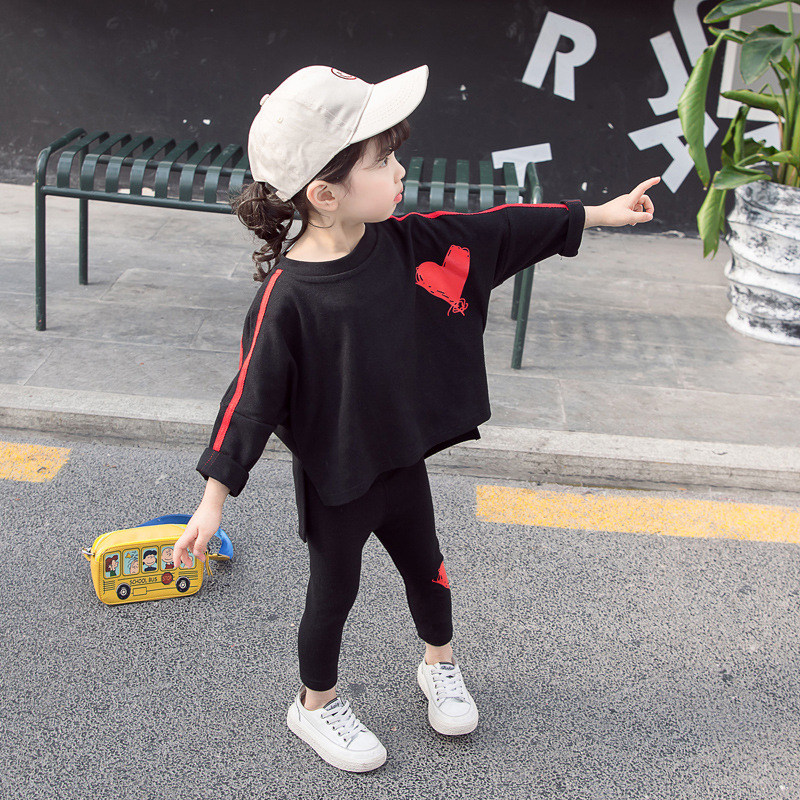 2021 осень новая коллекция детские западный стиль комплект мужские и женские Детский свободный круглый воротник верх Одежда + любовь для отдыха Два наборы