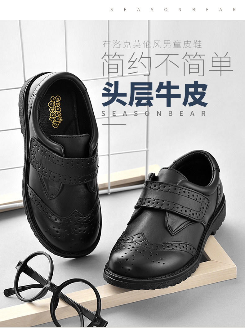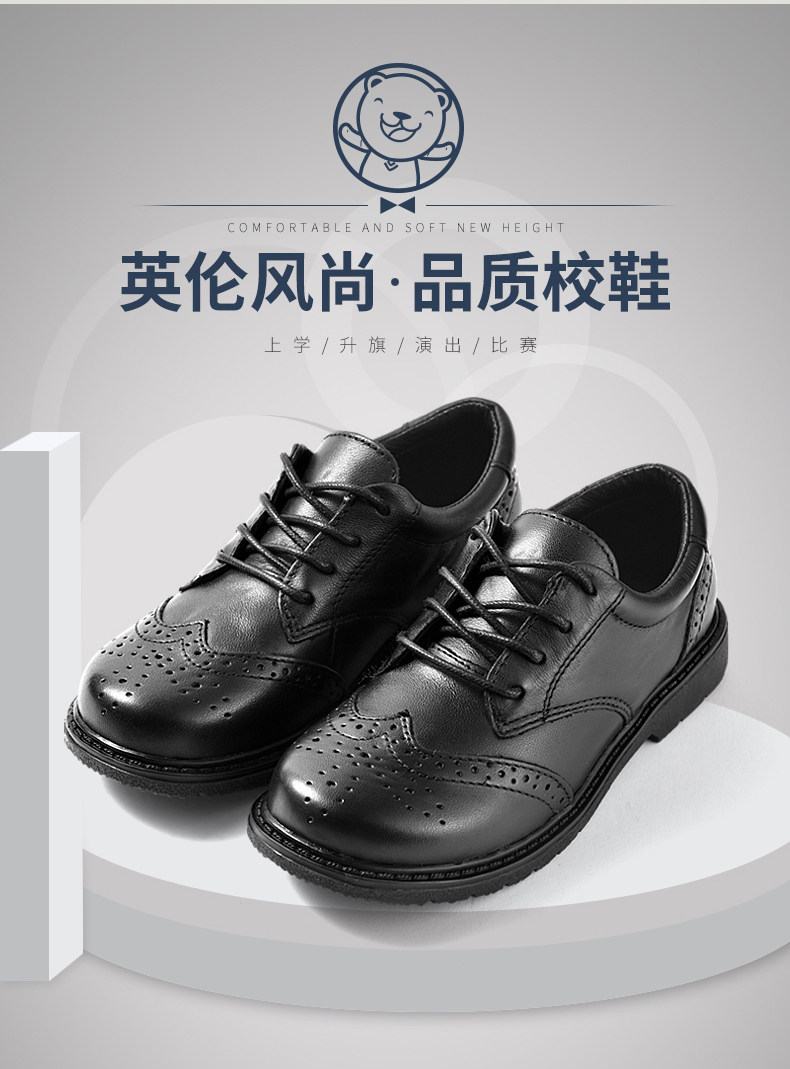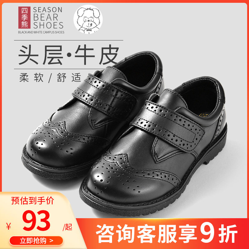 Четырехсезонный медведь на мальчика черный кожаная обувь винтаж из натуральной кожи Обувь начальная школа студентов мягкое дно туфли осень для отдыха кожаная обувь