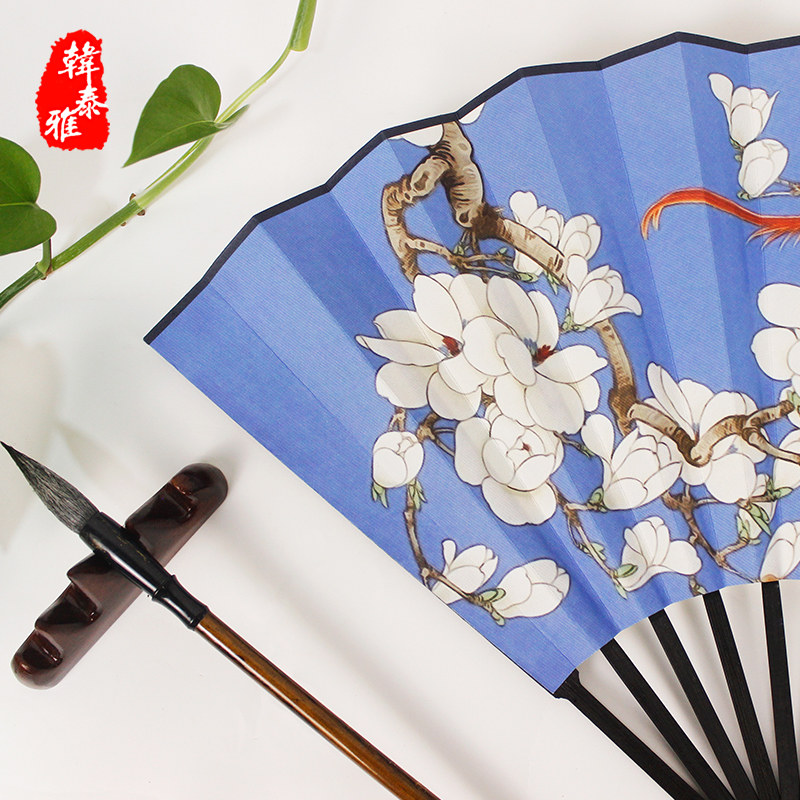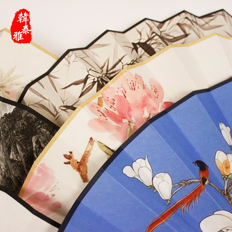Древний вентилятор складной вентилятор китайский стиль мужской Женская пользовательская горная вода ручная работа Арт подарок рисовая бумага Hanfu портативный