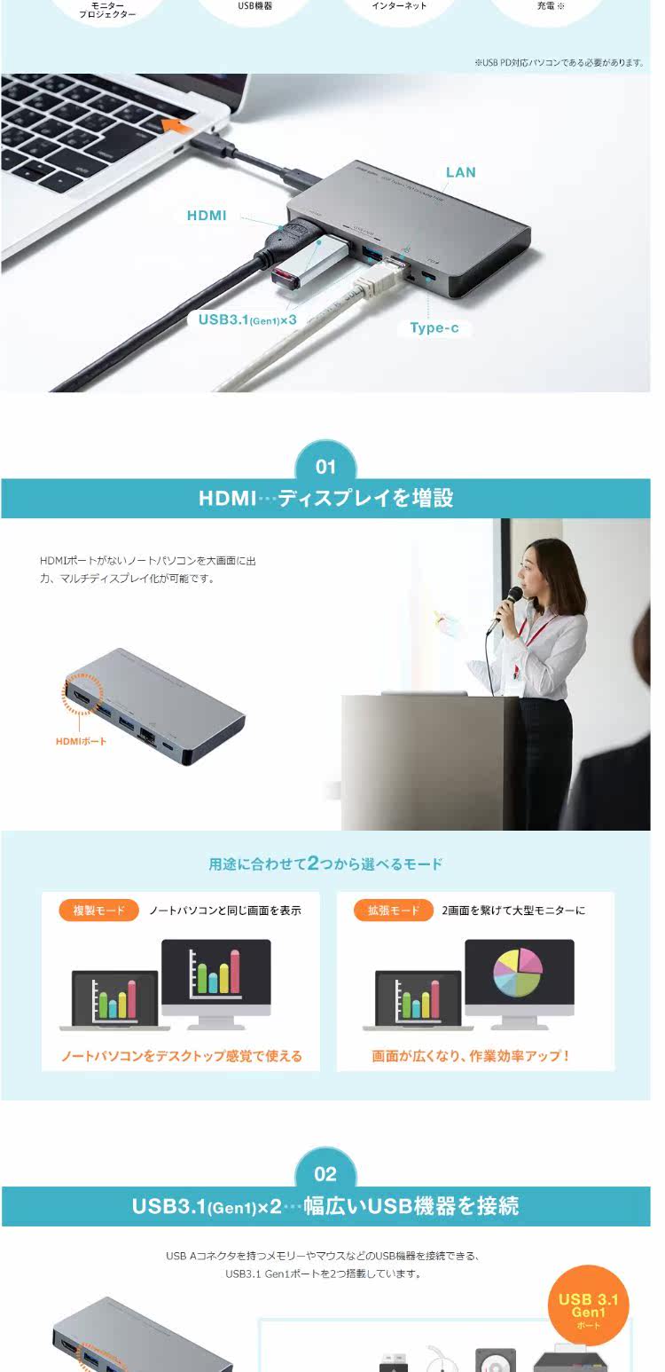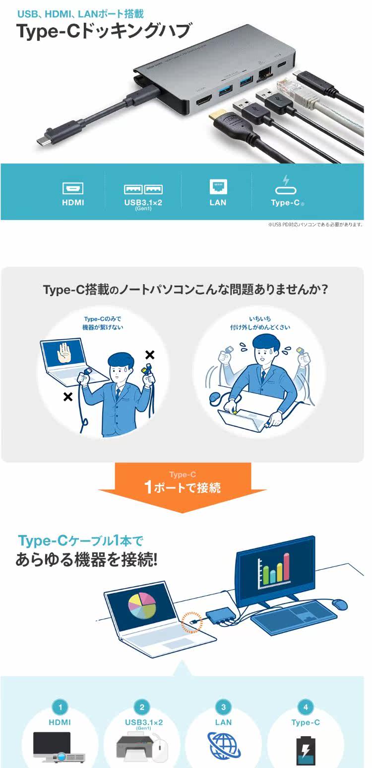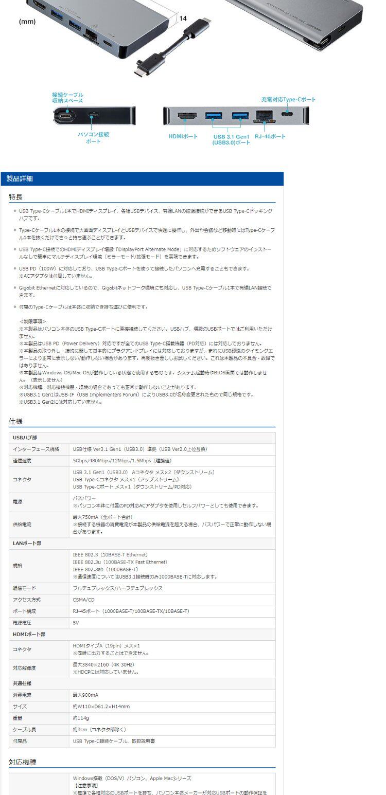 Япония прямо в подарок Sanwa USB Type-C HUB USB HUB / HDMI / LAN / 3.1 GEN1