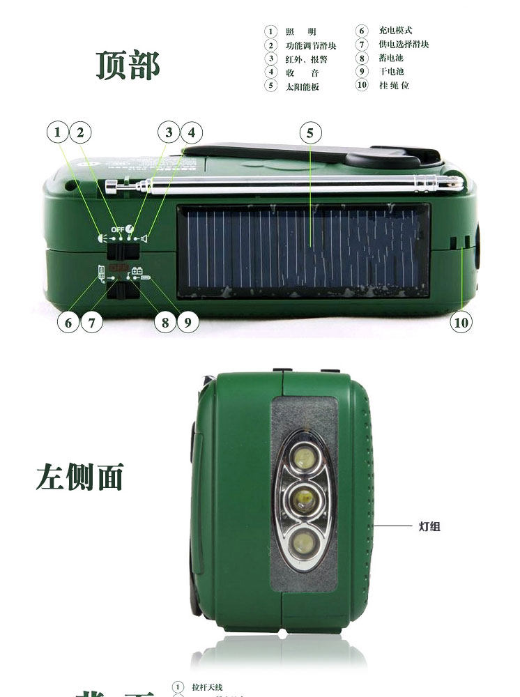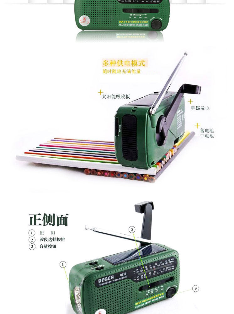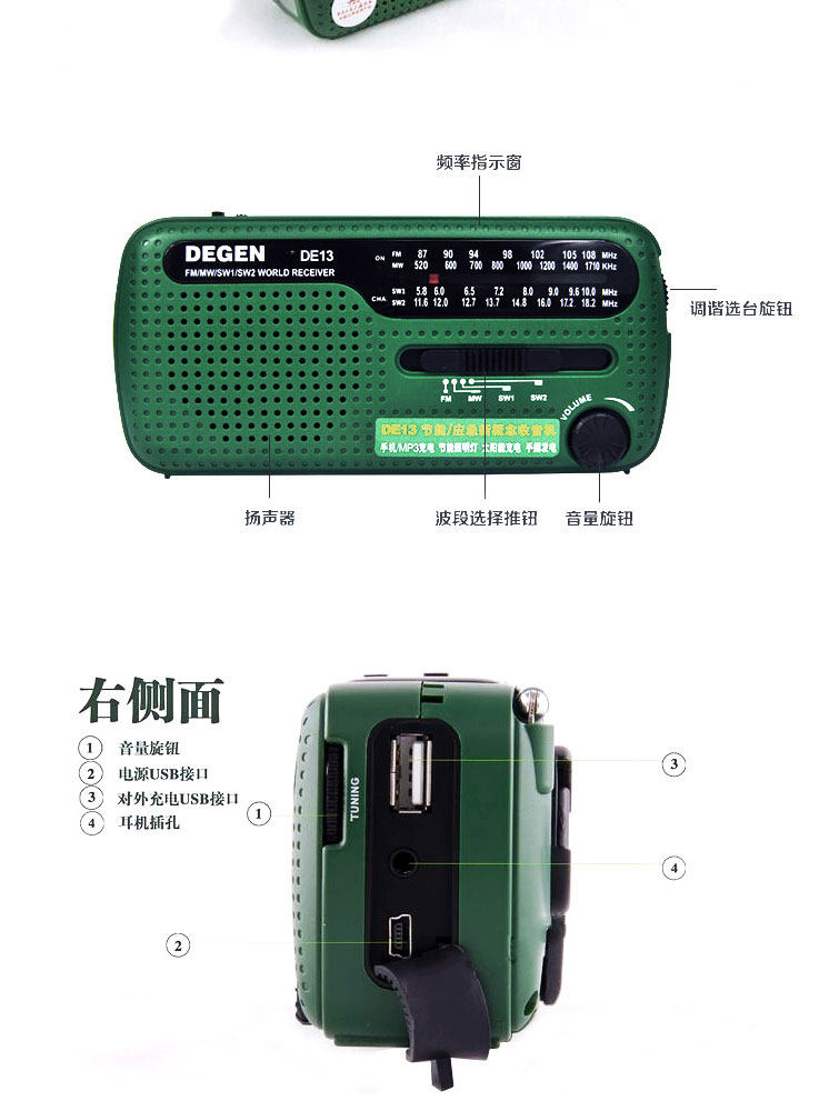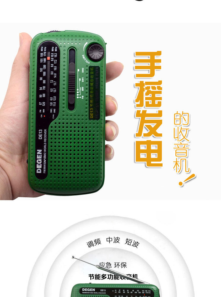 Немецкий DE13 портативный полностью Band-Creaked Electric Radio Solar Energy Зарядка FM Регулировка FM частота Синоволновая волна коротковолновый землетрясение аварийное освещение аварийное облегчение аварийный сигнал старые люди старые стиль Вещательный полупроводник
