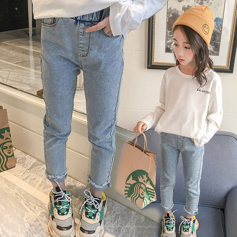 На девочку джинсы 2022 новая коллекция Пружинные брюки корейская версия западный стиль популярный детские Пустыня для отдыха Штаны