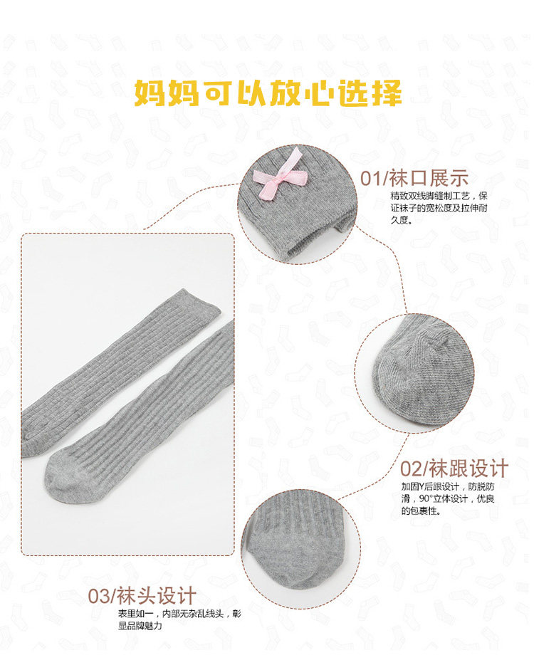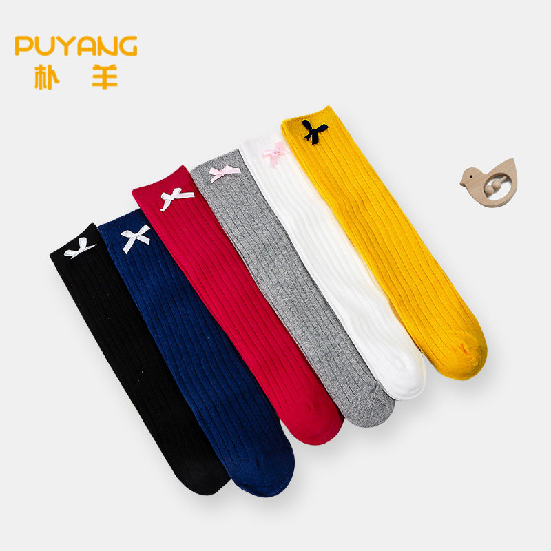 Младенческая осень чистый хлопок средние Носок детские Антимоситный шланг на девочку бантики Jink носки над чулками колена демисезонный стиль