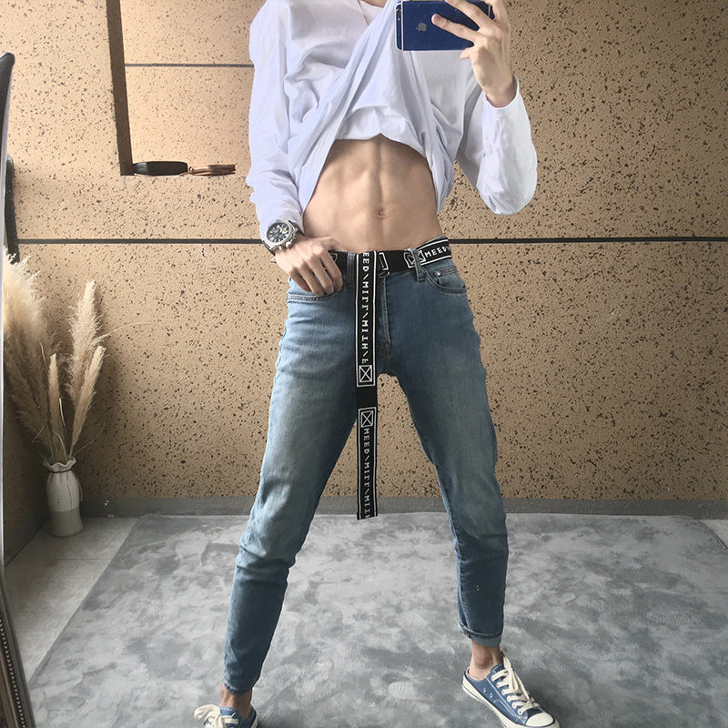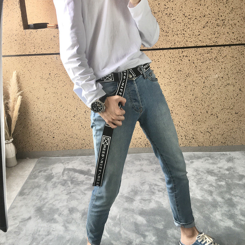 Универсальный ремень мужской Молодые штаны ремень Простой модные популярный Холст с ученицами корейская версия личность корейский ширина