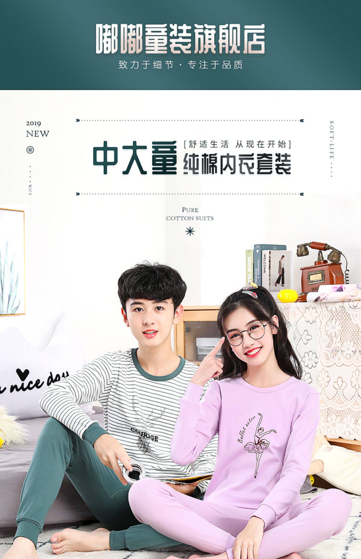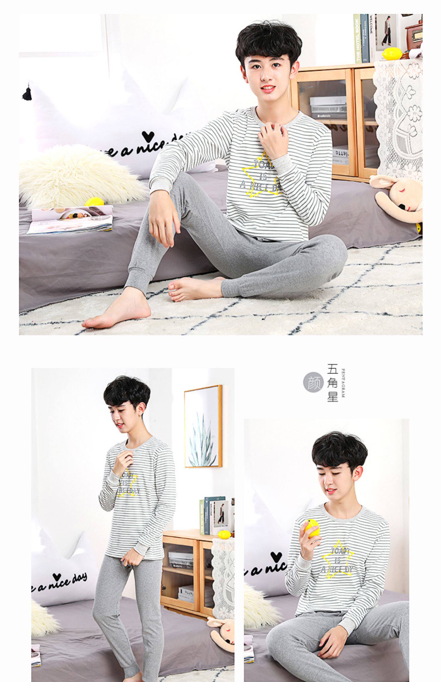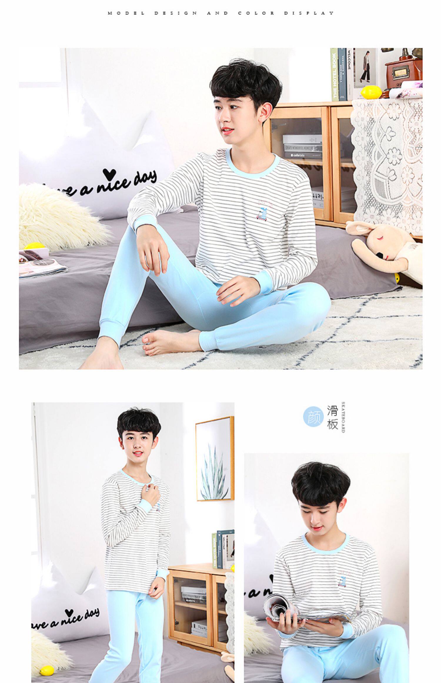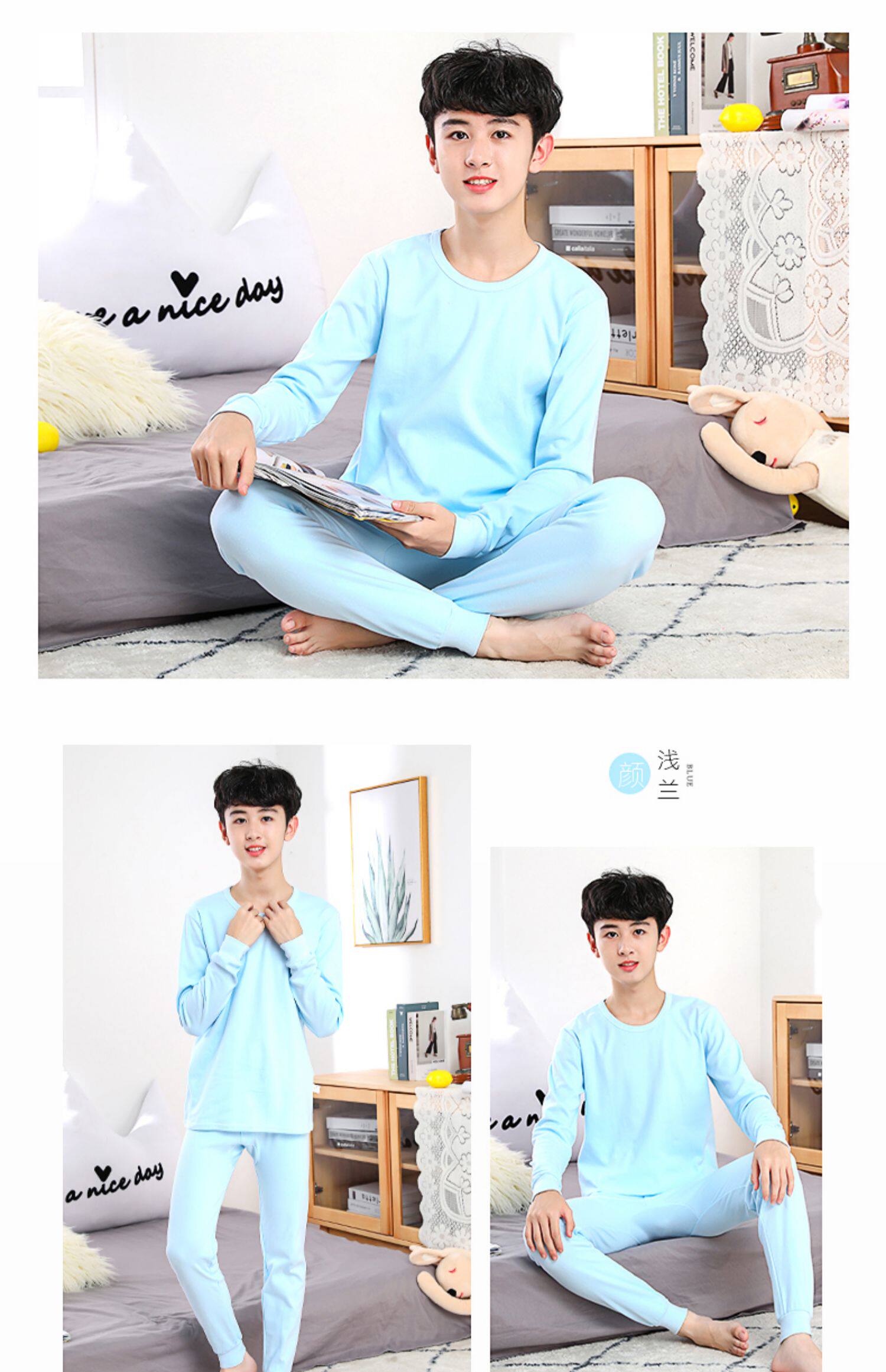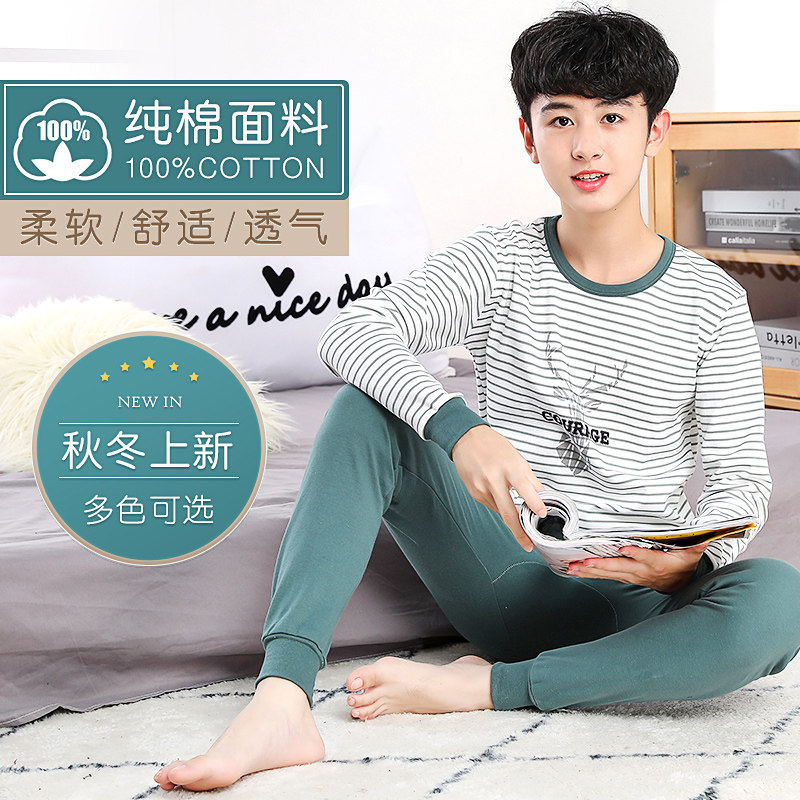 Детские удерживающий тепло нижнее белье комплект чистый хлопок Подросток осенняя одежда мужской Дети у детей полностью хлопок хлопок Свитер