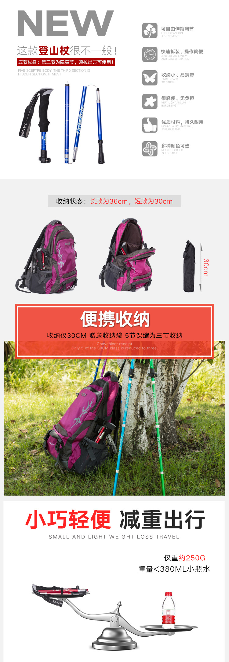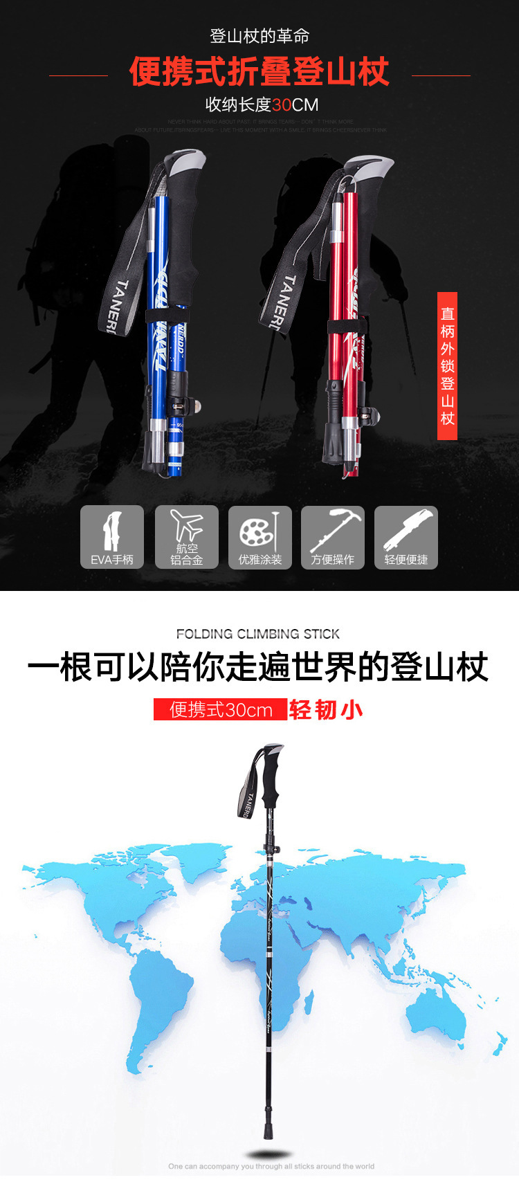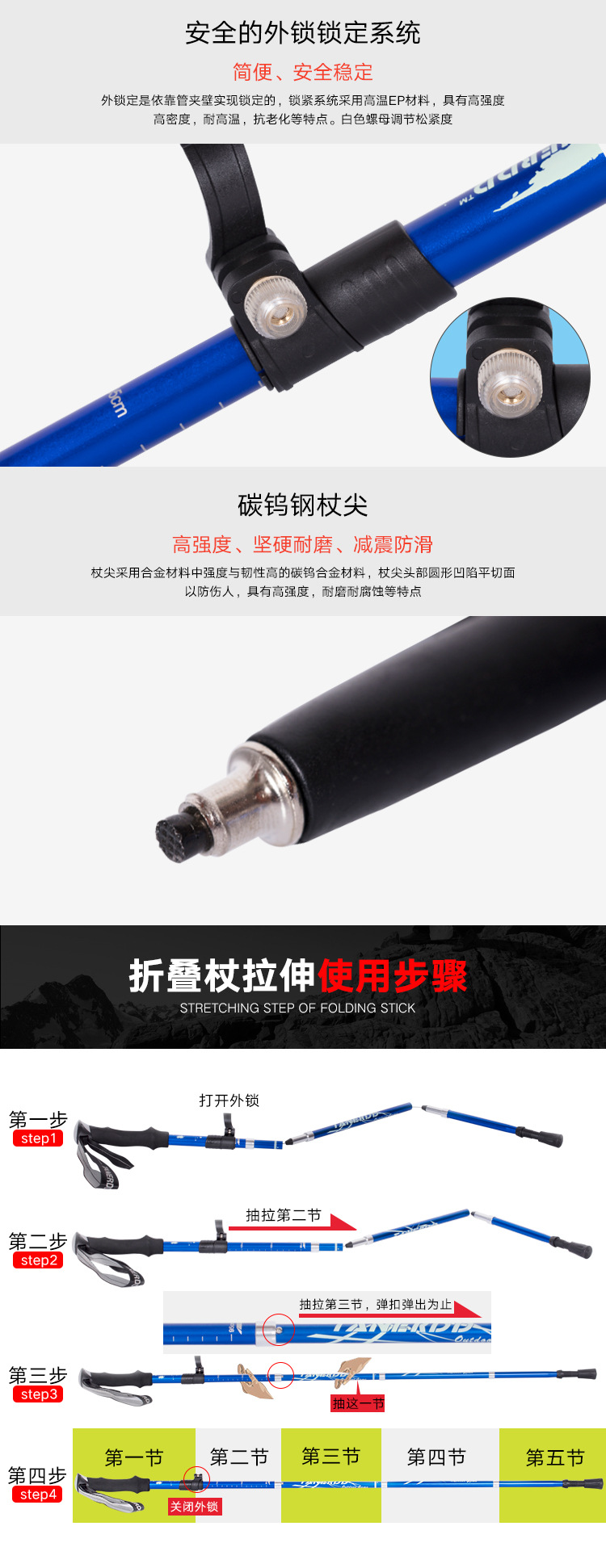 Folding Ultralight Trekking Poles Hiking Walking Stick