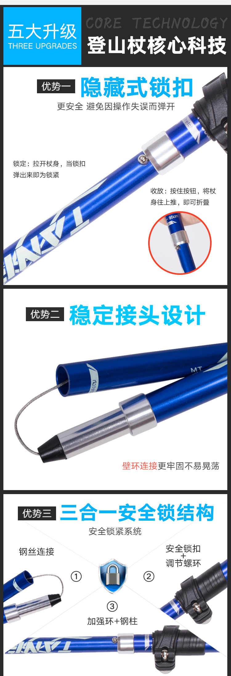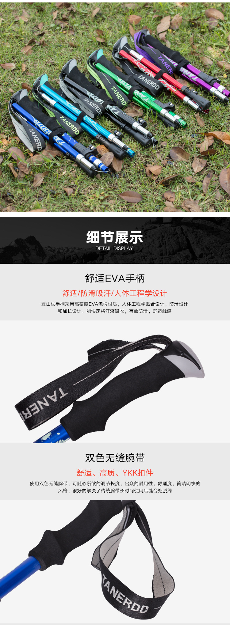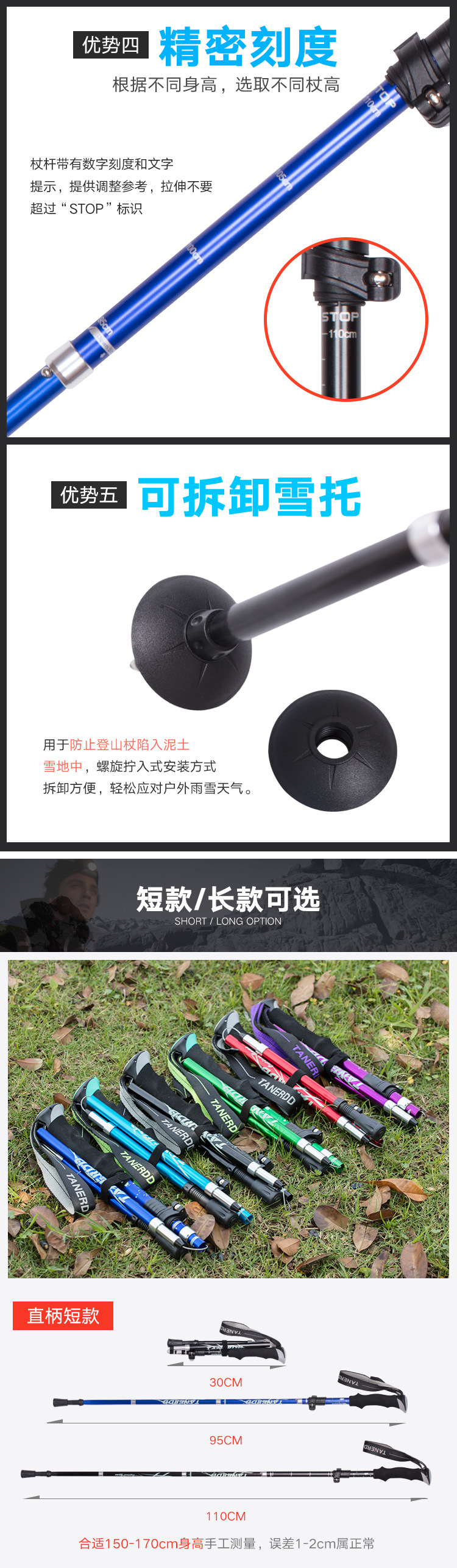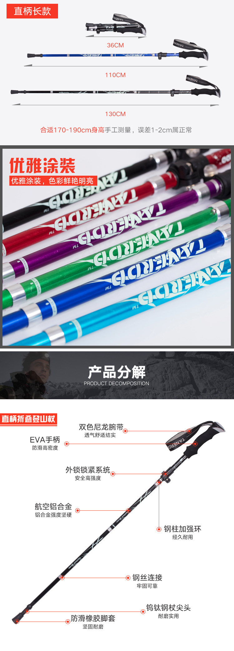 Folding Ultralight Trekking Poles Hiking Walking Stick