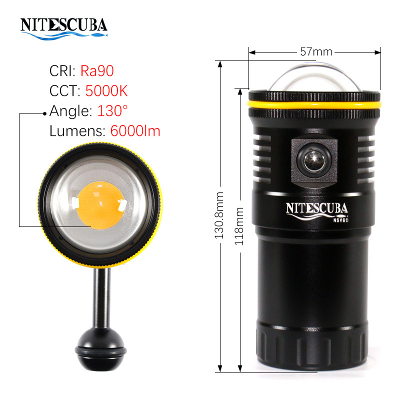 Nitescuba NSV60 Дайвинг Фотографии Дополнение свет 6000 светящаяся вода низ Сильное световое зрение частота Освещение фонарика