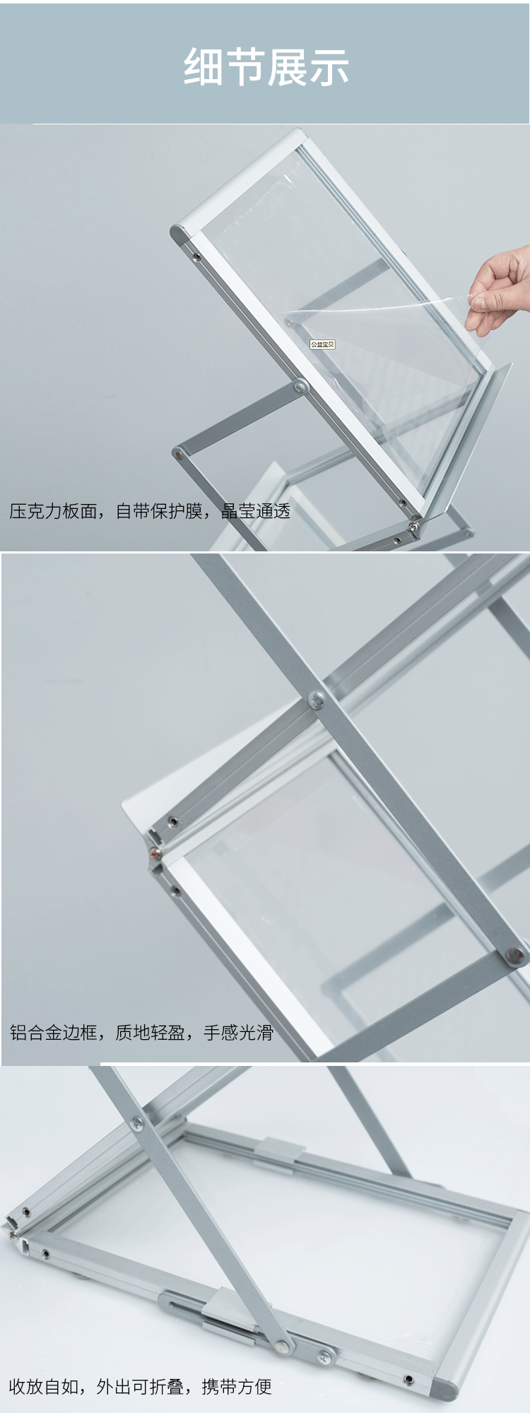 A4 алюминий сплав со складыванием Выставочная информационная стойка, стойка для фотоальбомов от пола до потолка, вертикальное продвижение один Газеты, журналы и книги цвет страница