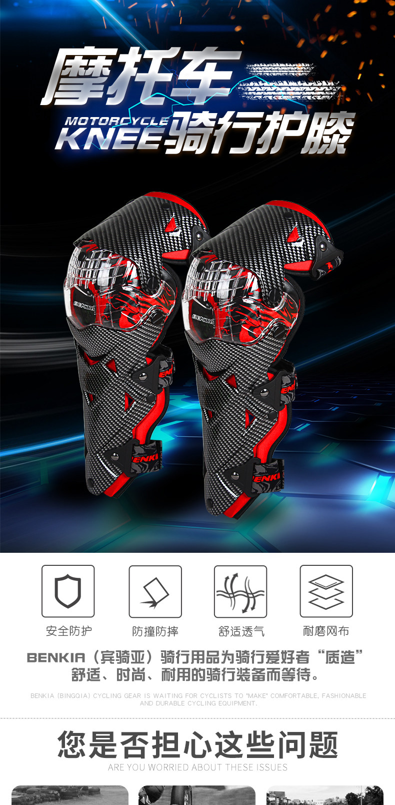 Бенкия Мотоциклевые коленные колодки весна и летние рыцарские коленные накладки с дороги против вентиляции воздухопроницаемый Четыре сезона