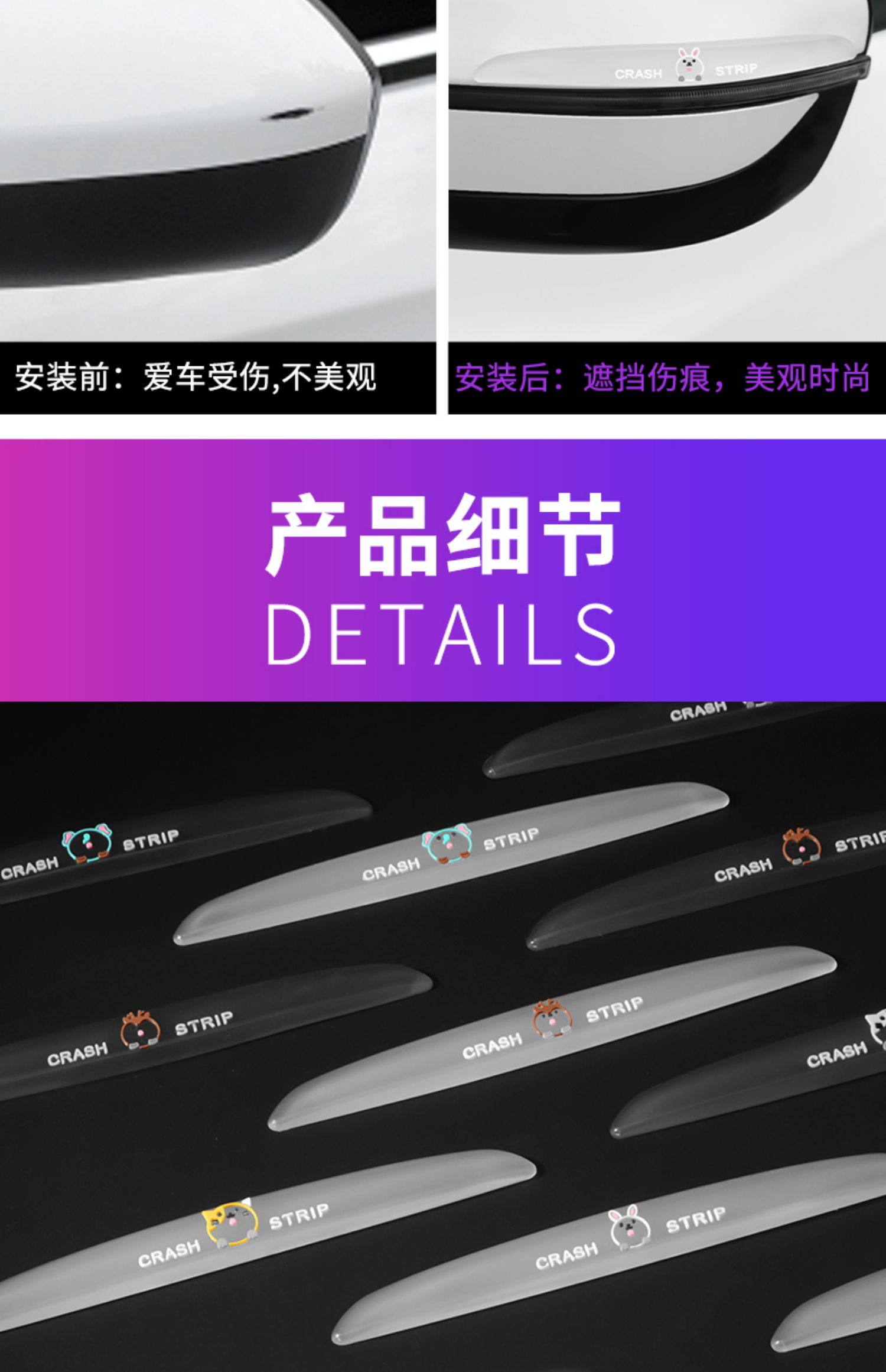 Автомобиль дверь Столкновение полосатый Автомобиль мультфильм милый анти-столкновение дверь сторона зеркало заднего вида Анти-царапин украшения тела