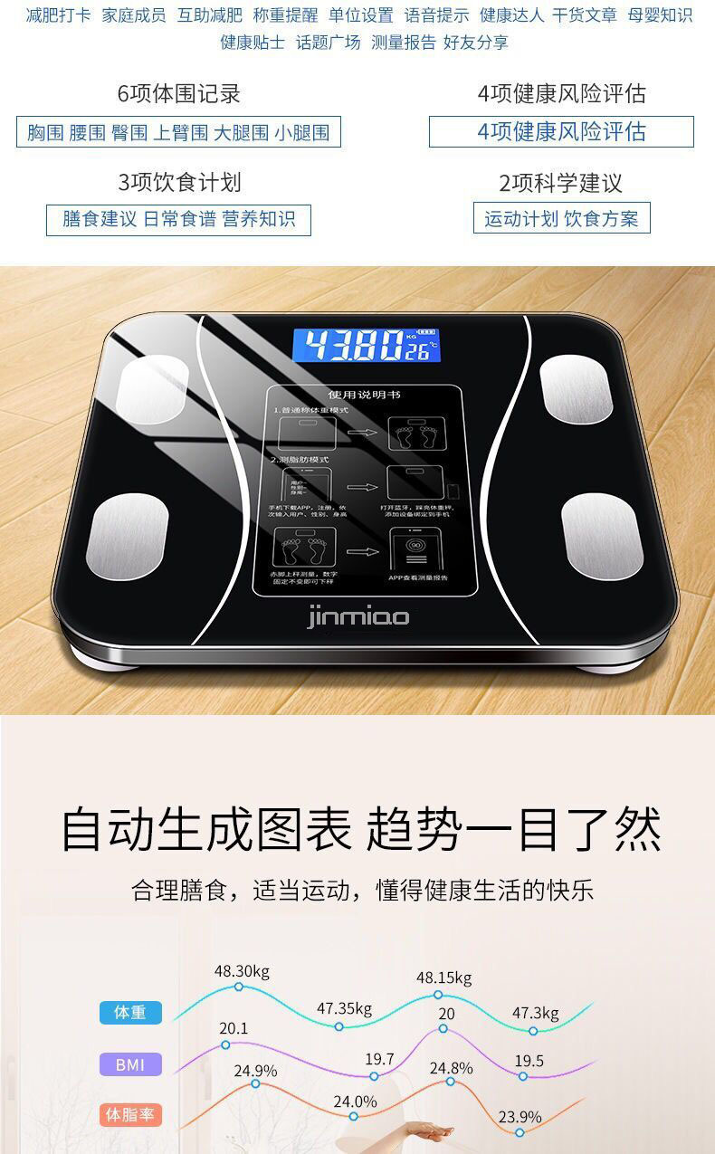 Синий Dental Smart Body Fat Scale Женский Профессиональный Потеря веса Точный Дом Для уменьшения Жировой масштабировки Степень Степень Степень Светотехническая Шкала