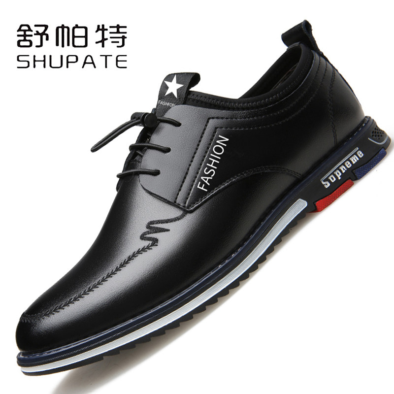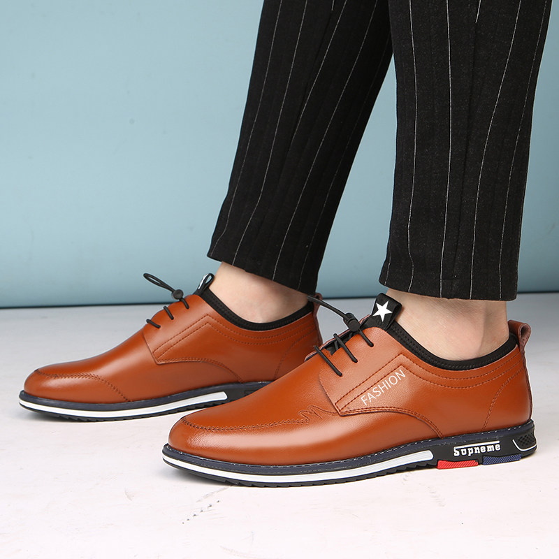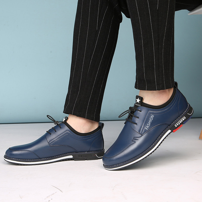 Кожаная обувь мужской из натуральной кожи осень 2021 новая коллекция Дикий корейская версия Приливная обувь бизнес для отдыха обувь воздухопроницаемый Приращение высокая обувь мужской