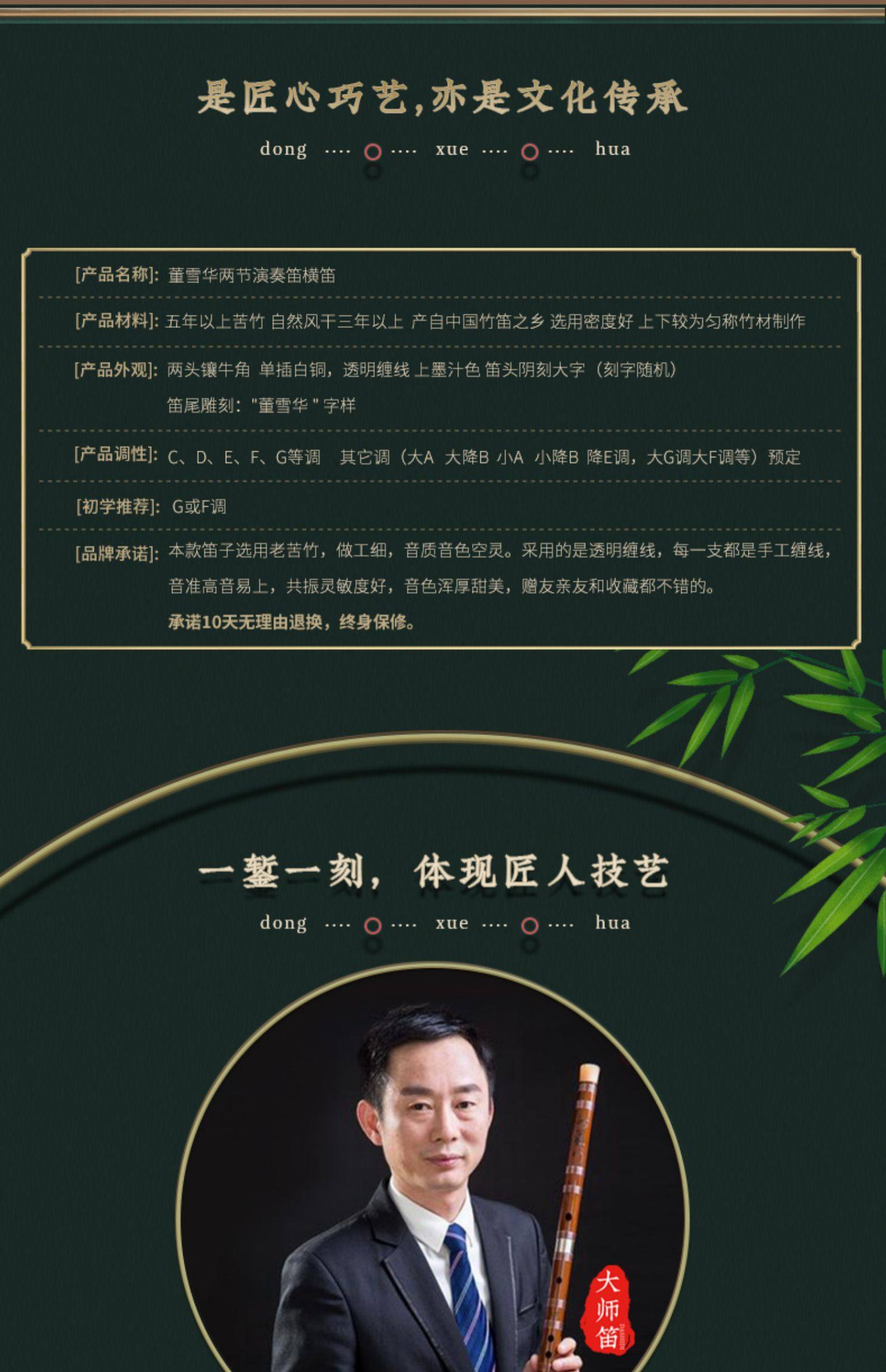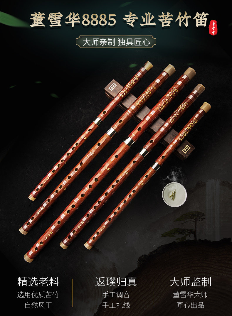 Dong Xuehua 8885 Dizi Bamboo Flute Профессиональное выступление на сцене ручная работа Подпись Файф высококачественный Музыкальный инструмент
