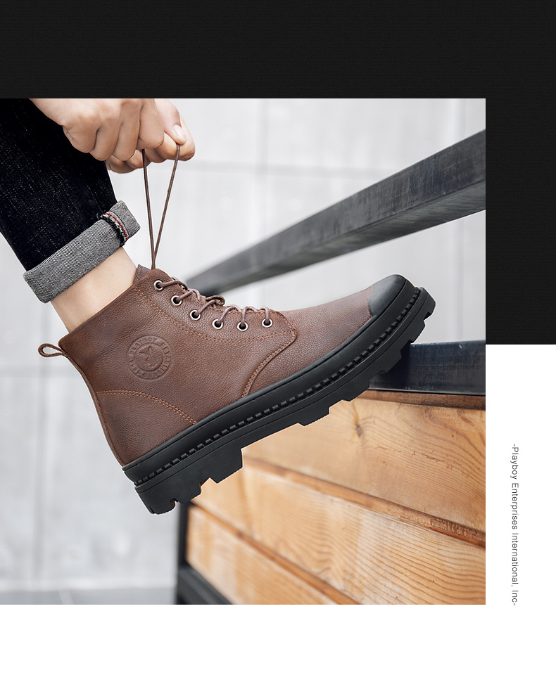 Плейбой мужской Обувь весна новая коллекция высокий кожаная обувь мужской английский стиль берцы мужской из натуральной кожи мужские ботинки корейская версия ботинки мужской