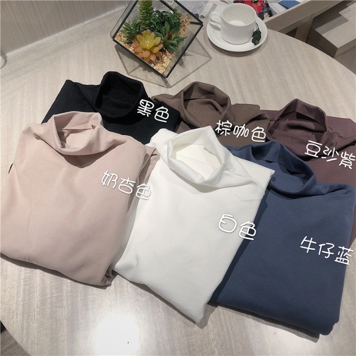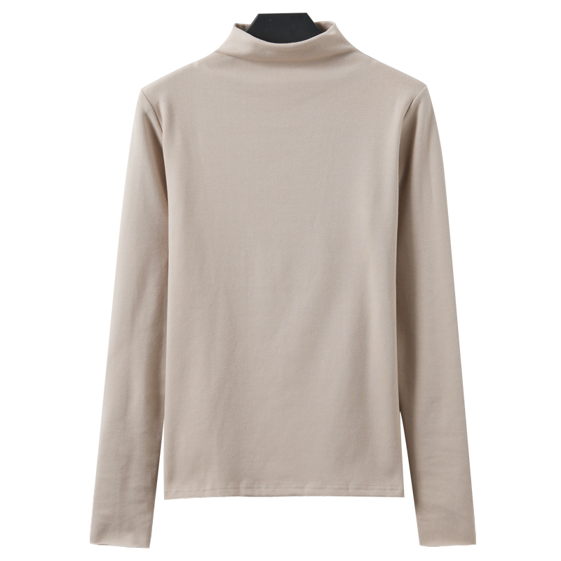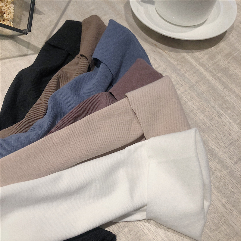 Нижняя рубашка женская осень-зима 2020 новая коллекция корейская версия Однотонная футболка приталенный длинный рукав осень Маленькая рубашка короткий верх одежда