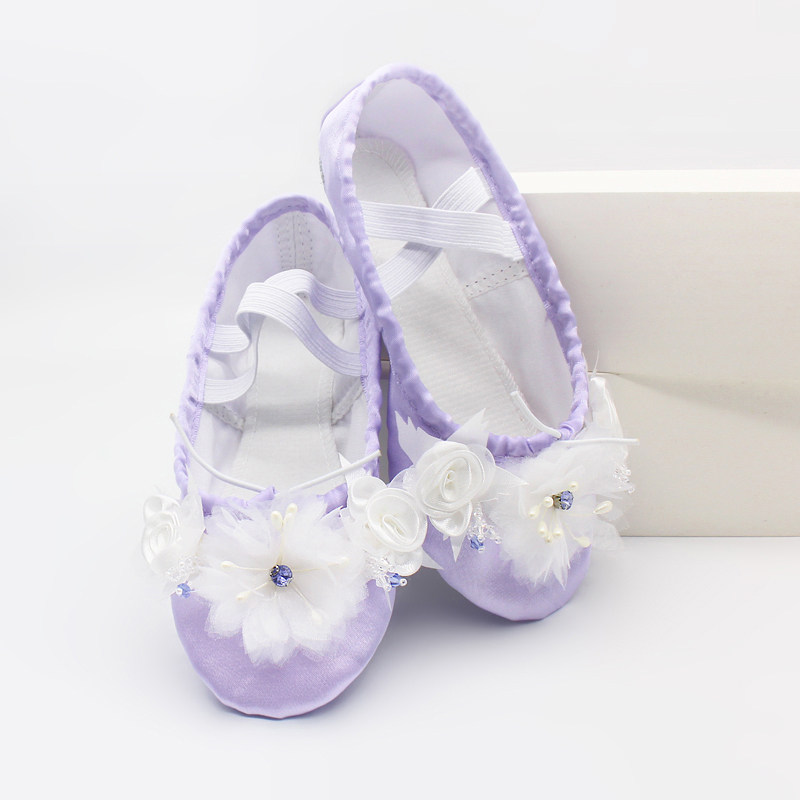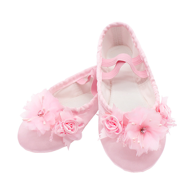 Детские Детские сатиновые туфли для танцев танцевальная обувь Мягкий балет танцевальная обувь Туфли для танцев из атласа с цветком 9078
